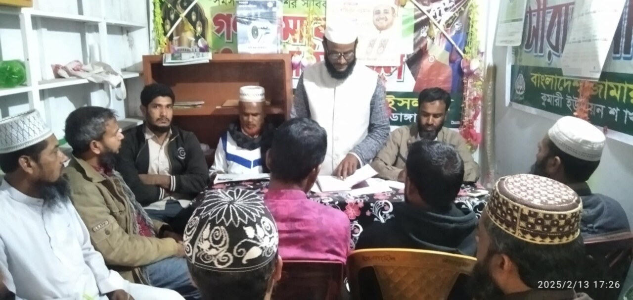 আলমডাঙ্গার কুমারী ইউনিয়ন জামায়াতের জরুরি নির্বাচনী সভা অনুষ্ঠিত হয়েছে। বৃহঃস্পতিবার কুমারী ইউনিয়ন জামায়াতে আমীর মাওলানা আবুবকর সিদ্দিক বাবলু এ-র সভাপতিত্বে বিকেল ৫ টার সময় সহকারী সেক্রেটারি আনারুল ইসলাম এ-র সঞ্চালনায় এক জরুরী দায়িত্বশীল সমাবেশ বৈঠক অনুষ্ঠিত হয়েছে। অনুষ্ঠানের শুরুতে পবিত্র কুরআন থেকে তেলাওয়াত করেন ৮ নং ওয়ার্ড শাখার সভাপতি কাসেদ আলী। সভায় আগামী জাতীয় সংসদ নির্বাচন বাস্তবায়নের আলোকে কেন্দ্রভিত্তিক পরিচালক মনোনীত করেন। উক্ত অনুষ্ঠানে উপস্থিত ছিলেন বাংলাদেশ জামায়াতে ইসলামী তিন নম্বর কুমারী ইউনিয়ন শাখার যুব বিভাগের সভাপতি সেলিম হোসেন। অর্থ সম্পাদক সাইদুল ইসলাম। ওলামা বিভাগের সভাপতি মাওলানা তাজমিনুর রহমান এবং আরও উপস্থিত ছিলেন অত্র ইউনিয়নের ওয়ার্ড পর্যায়ে সভাপতি সেক্রেটারি ও অর্থ সম্পাদকগন। সার্বিক সহযোগীতা করেন সেক্রেটারি আলতাফ হোসেন।