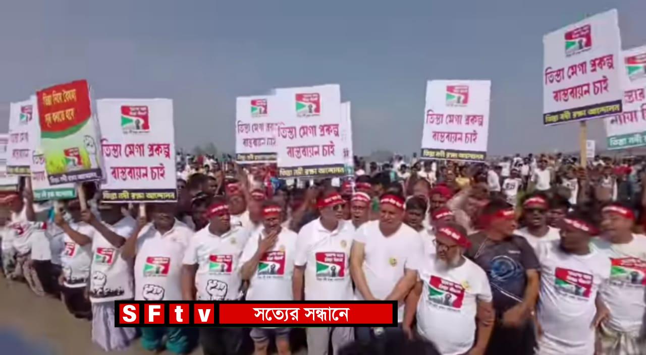 শফিকুল ইসলাম আলিফ : আন্তর্জাতিক আইনকে বৃদ্ধাঙ্গুলি দেখিয়ে তিস্তা থেকে ভারতের একতরফা পানি প্রত্যাহার এবং পানির ন্যায্য হিস্যা ও মেগা প্রকল্প অবিলম্বে বাস্তবায়নের দাবিতে মৃত প্রায় তিস্তা নদীর হাঁটু পানিতে নেমে প্রতিবাদ জানিয়েছেন তিস্তা পাড়ের হাজার হাজার মানুষ।