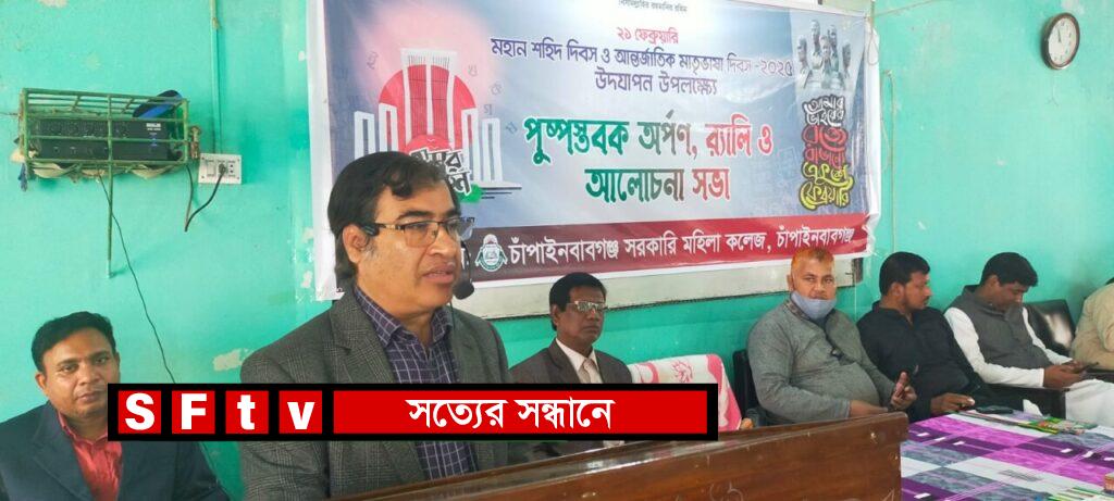 মাহিদুল ইসলাম ফরহাদ : চাঁপাইনবাবগঞ্জ সরকারি মহিলা কলেজে যথাযথ মর্যাদার সাথে মহান শহিদ দিবস ও আন্তর্জাতিক মাতৃভাষা দিবস ২০২৫ উদযাপন করা হয়। শুক্রবার সূর্যোদয়ের সাথে সাথে পতাকা (অর্ধনমিত) উত্তোলণের মাধ্যমে দিনের কার্যক্রম শুরু হয়। কলেজের অধ্যক্ষ প্রফেসর ড. বিপ্লব কুমার মজুমদারের নেতৃত্বে সকল শিক্ষক কর্মকর্তা, কর্মচারী ও শিক্ষার্থীরা প্রভাতফেরির মাধ্যমে নবাবগঞ্জ সরকারি কলেজের কেন্দ্রীয় শহিদ মিনারে শ্রদ্ধার্ঘ্য নিবেদন করেন। পরে কলেজ প্রাঙ্গণে শহিদ মিনারে পুষ্পস্তবক অর্পণ করা হয়। আলোচনা সভা, বিভিন্ন ইভেন্টের প্রতিযোগিতায় বিজয়ী শিক্ষার্থীদের মধ্যে পুরস্কার ও সনদপত্র বিতরণ এবং শহিদদের স্মরণে দোয়া পাঠের মধ্য দিয়ে অনুষ্ঠানটি সমাপ্ত হয়।