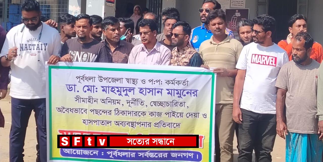 নেত্রকোণার পূর্বধলায় স্বাস্থ্য কর্মকর্তার বিক্ষোভ