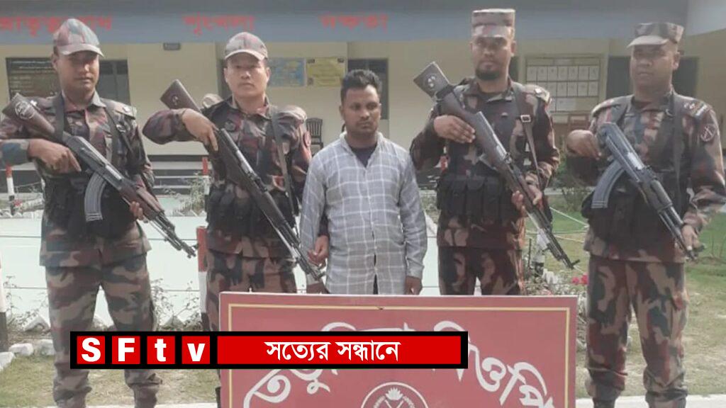 মোঃ খাদেমুল ইসলাম : পঞ্চগড় তেতুলিয়ায় অবৈধভাবে সীমান্ত পার হয়ে বাংলাদেশে প্রবেশের সময় সুমন রায় (২৬) নামে এক যুবকে আটক করেছে বিজিবি ।রবিবার দুপুরে উপজেলার সদর ইউনিয়নের পুরাতন বাজার সীমান্তবর্তী মেইন পিলার ৪৪৩ এর ২সাব পিলারের ১০ গজ বাংলাদেশের অভ্যন্তরে অতিক্রম করার সময় বাংলাদেশী নাগরিক শ্রী সুমন রায় (২৬)কে আটক করে পঞ্চগড় ১৮ বিজিবি ব্যাটালিয়নের তেঁতুলিয়া কোম্পানির সদস্যরা। সুমন ঠাকুরগাঁও জেলার ঢেলারহাট এলাকার শ্রী অরুণ রায়ের পুত্র। রোববার (২৩ ফেব্রুয়ারি) রাতে এক সংবাদ বিজ্ঞপ্তিতে এ তথ্য জানানো হয়। ভারত হতে অবৈধ পথে বাংলাদেশে অনুপ্রবেশের সময় মহানন্দা নদীতে পাথর শ্রমিকরা দেখতে পেয়ে বিজিবির টহল দলকে সংবাদ দিলে অফিসার সঙ্গীয় ফোর্স সহ ঘটনাস্থলে পৌঁছে সুমনকে আটক করে বিজিবি।