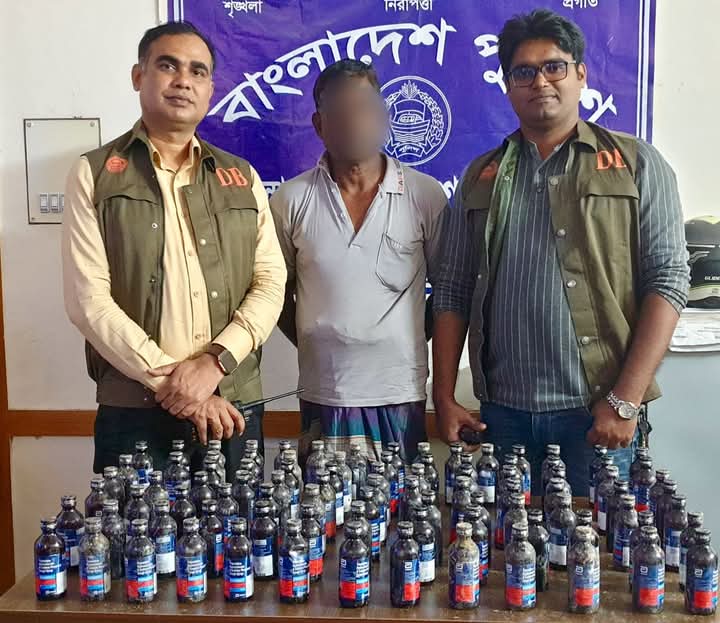চুয়াডাঙ্গা জেলার পুলিশ সুপার খন্দকার গোলাম মওলা, বিপিএম-সেবা এর সার্বিক দিকনির্দেশনায় জেলা পুলিশের সকল ইউনিটে একযোগে মাদক ও চোরাচালান বিরোধী অভিযান পরিচালিত হচ্ছে। তারই ধারাবাহিকতায় জেলা গোয়েন্দা শাখা (ডিবি) কর্তৃক মাদক বিরোধী বিশেষ অভিযানে এসআই(নিঃ) মুহিদ হাসান, সঙ্গীয় এএসআই(নিঃ) মোঃ মামুনুর রহমান, এএসআই(নিঃ) মোঃ রজিবুল হক, এএসআই(নিঃ) শ্রী রমেন কুমার সরকার সকলেই জেলা গোয়েন্দা শাখা, চুয়াডাঙ্গা সঙ্গীয় ফোর্সসহ আজ ২৫ ফেব্রুয়ারি ২০২৫ তারিখ ১৬:৩০ ঘটিকায় দামুড়হুদা থানা এলাকায় মাদকবিরোধী অভিযান পরিচালনা করে চুয়াডাঙ্গা দামুড়হুদা থানাধীন গোবিন্দপুর গ্রামাস্থ জনৈক মোঃ কুদ্দুস মিয়ার পিয়াজের ক্ষেতের সামনে সুইচ গেট সংলগ্ন রঘুনাথপুর টু গোবিন্দপুরগামী পাঁকা রাস্তার উপর হতে আসামী ১। মোঃ আকরাম হোসেন@ আকালে(৫৫), পিতা- মৃত খাদেম হোসেন, সাং- পুরাতন বাস্তপুর (মালিথাপাড়া), থানা- দামুড়হুদা, জেলা- চুয়াডাঙ্গাকে গ্রেফতার পূর্বক আসামীর নিকট হতে ৯৪ (চুরানব্বই) বোতল ফেন্সিডিল জব্দ করা হয়। গ্রেফতারকৃত আসামীর বিরুদ্ধে দামুড়হুদা মডেল থানায় নিয়মিত মামলা রুজু করা হয়।