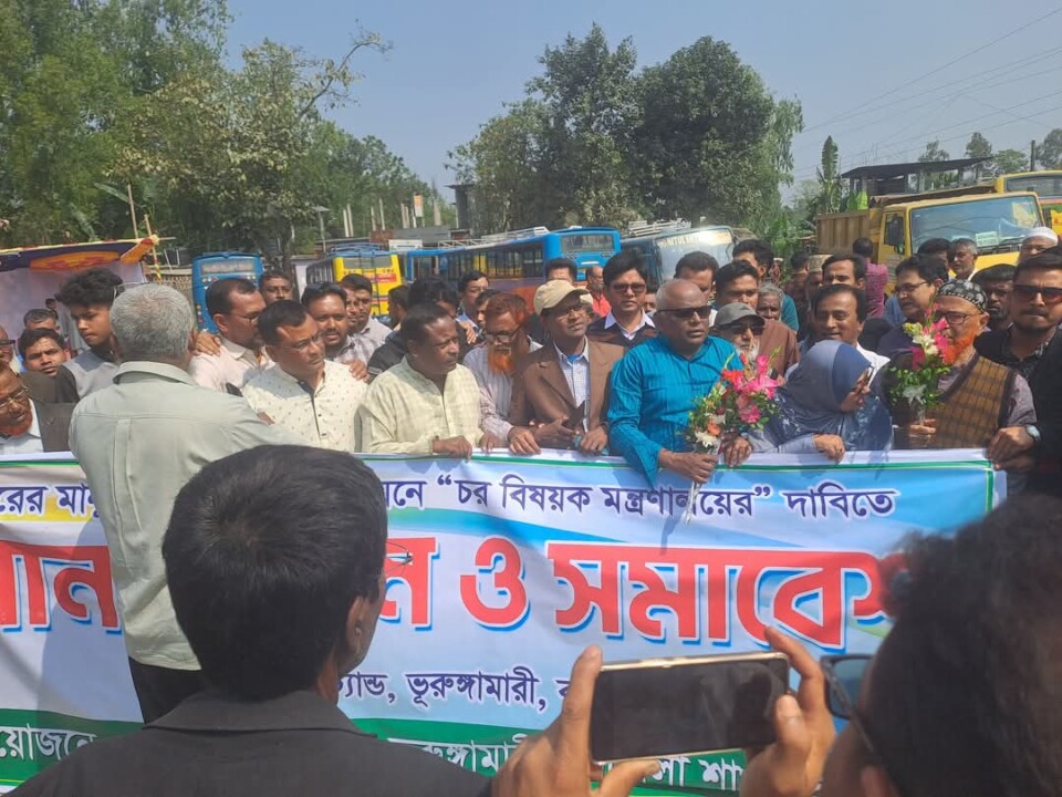 মোঃ জাকারিয়া হোসেন; আইসো বাহে চর বাঁচাই’—স্লোগানে চরের মানুষের জীবনমান উন্নয়নের লক্ষ্যে চর বিষয়ক মন্ত্রণালয় গঠনের দাবিতে কুড়িগ্রামের ভূরুঙ্গামারীতে মানববন্ধন ও সমাবেশ অনুষ্ঠিত হয়েছে।