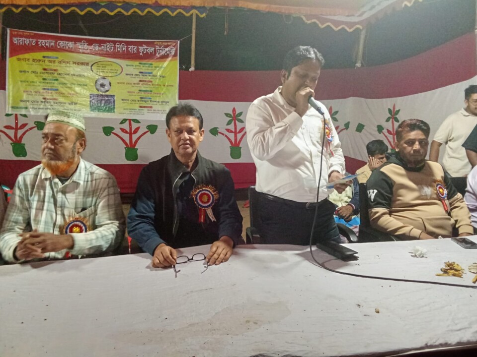সুব্রত চন্দ্র দাস ; গাজীপুর মহানগরীর পূবাইল থানাধীন ৪১ নং ওয়ার্ডের পূবাইল উচ্চ বিদ্যালয়ের মাঠে আরাফাত রহমান কোকো স্মৃতি ডে-নাইট মিনিবার ফাইনাল ফুটবল টুর্নামেন্ট ও পুরস্কার বিতরণী অনুষ্ঠানের আয়োজন করা হয় । বুধবার (২৬ শে ফেব্রুয়ারি-২০২৫ ইং) আরাফাত রহমান কোকো স্মৃতি ডে-নাইট মিনিবার ফাইনাল ফুটবল টুর্নামেন্ট ও পুরস্কার বিতরণী অনুষ্ঠানে প্রধান অতিথি হিসেবে উপস্থিত ছিলেন জনাব হারুন অর রশিদ সরকার ,সাধারণ সম্পাদক পূবাইল থানা বিএনপি, উক্ত খেলায় সভাপতিত্ব করেন মোঃ মোশারফ হোসেন দেওয়ান, সভাপতি ৪১ নং ওয়ার্ড বিএনপি, পৃষ্ঠপোষকতায় ছিলেন মোঃ আরিফ হোসেন ভূঁইয়া, সাংগঠনিক সম্পাদক পূবাইল থানা বিএনপি, সার্বিক তত্ত্বাবধানে ছিলেন শেখ তানভীর আহমেদ, সহ-সভাপতি পূবাইল থানা বিএনপি, বিশেষ মেহমান হিসেবে উপস্থিত ছিলেন মোঃ কাজী রবিউল ইসলাম আওলাদ, সহ-সভাপতি পূবাইল থানা বিএনপি, প্রধান সমন্বয়কারী হিসেবে উপস্থিত ছিলেন মোঃ ফারুক শিকদার, সাংগঠনিক সম্পাদক ৪১ নং ওয়ার্ড বিএনপি, সমন্বয়কারী হিসেবে উপস্থিত ছিলেন মোঃ হাফিজুল ইসলাম বুলবুল, সভাপতি ৯ নং ওয়ার্ড যুবদল ও সহ-সভাপতি বাড়ীয়া ইউনিয়ন যুবদল,গাজীপুর সদর ও বিশিষ্ট ব্যবসায়ী পূবাইল বাজার, সার্বিক সহযোগিতায় ছিলেন আফজল হোসেন, সম্মানিত সদস্য পূবাইল থানা বিএনপি ও সাবেক সভাপতি ১ নং ওয়ার্ড পূবাইল ইউনিয়ন বিএনপি, মোঃ মাসুদ রানা, সাবেক সাংগঠনিক সম্পাদক পূবাইল ইউনিয়ন যুবদল, বিশেষ অতিথি হিসেবে উপস্থিত ছিলেন মোঃ মামুন মিয়া, যুগ্ম সাধারণ সম্পাদক ৪১ নং ওয়ার্ড যুবদল, মোঃ বিল্লাল হোসেন বেপারী, হাজী স্টোর, বিশিষ্ট ব্যবসায়ী,পূবাইল বাজার, মোঃ আল আমিন বেপারী, কমিউনিটি ক্লিনিক ডাঙ্গা, ধারাভাষ্যকার ছিলেন মোঃ জাকির হোসেন, বিএনপি নেতা ও বিশিষ্ট ব্যবসায়ী পূবাইল বাজার, খেলা পরিচালনায় ছিলেন আশিকুর রহমান আশিক, ইমন খান, ফাইজান বিন আফজল, সৌজন্যেঃ পূবাইল বেপারী পাড়া, বিএনপি ও অঙ্গ সংগঠন ।
