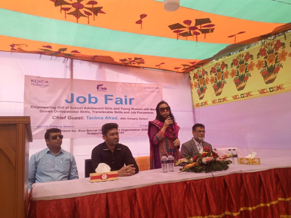 মোঃ মুক্তাদির হোসেন। ; ঝড়ে পড়া শিক্ষার্থী, সুবিধা বঞ্চিত শিশু-নারী ও তালাকপ্রাপ্ত নারীদের বিভিন্ন ক্যাটাগরিতে প্রশিক্ষণ দিয়ে সরাসরি চাকরি পাওয়ার ব্যবস্থা করে দিচ্ছেন ইকো-সোশ্যাল ডেভেলপমেন্ট অর্গানাইজেশন (ইএসডিও)। ১৫ বছর থেকে ২৪ বছর বয়সের শিশু-নারীদের প্রশিক্ষণের মাধ্যমে আত্মনির্ভরশীল হিসেবে গড়ে তুলতে বহুদিন ধরে কাজ করে যাচ্ছেন এই সংস্থাটি। কিশোরী ও যুবতী মহিলাদের কর্মসংস্থান ও আর্থিক স্বাধীনতা বাড়ানোর জন্য বৃহস্পতিবার সকাল থেকে বিকেল পর্যন্ত গাজীপুরের কালীগঞ্জ উপজেলার তুমলিয়া ইউনিয়নের দক্ষিণ ভাদার্ত্তী এলাকায় গাজীপুর ইকো সেন্টার ফর স্কিল ডেভেলপমেন্টে চাকরি মেলার আয়োজন করেন ইএসডিও। ইউনিসেফের সার্বিক সহযোগিতায় ইকো-সোশ্যাল ডেভেলপমেন্ট অর্গানাইজেশন (ইএসডিও)’র বাস্তবায়নে এই চাকরি মেলার আয়োজন করা হয়। এসিআই, প্রাণ-আরএফএল, বিডি জব ও শক্তি ফাউন্ডেশনের মতো স্বনামধন্য ১২টি কোম্পানী এই মেলায় চাকরি দেয়ার জন্য অংশগ্রহণ করেন। প্রত্যাশিত চাকরি প্রার্থীরা তাদের যোগ্যতা অনুসারে পছন্দনীয় কোম্পানীতে চাকরির জন্য তারা আবেদন করেন।