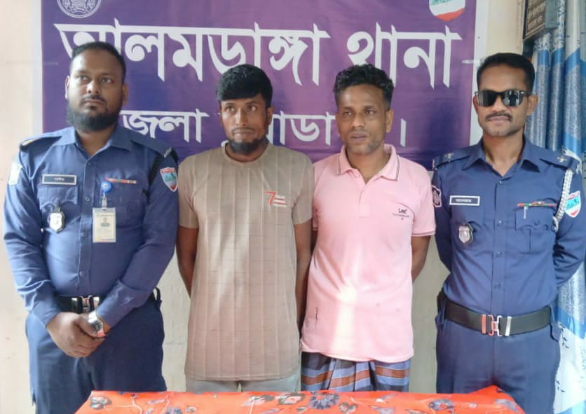 আলমডাঙ্গা থানার অফিসার ইনচার্জ (ওসি) মো. মাসুদুর রহমানের নেতৃত্বে সঙ্গীয় ফোর্সসহ থানা এলাকায় গ্রেফতারি পরোয়ানা তামিল, মাদক উদ্ধার ও বিশেষ অভিযান পরিচালনার সময় এই দুই আসামিকে আটক করা হয়।