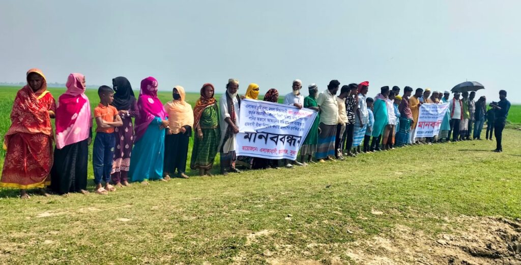 এসব কর্মকান্ডের প্রতিবাদে সোমবার দুপুরে ওই ইউনিয়নের কসমা বিল পাড়ে মানববন্ধন কর্মসূচির আয়োজন করে এলাকাবাসী। মানববন্ধনে ফেনারবাঁক ইউনিয়নের ভূতিয়ারপুর গ্রামের জাগবর আলী, শুক্কুর আলী, একই ইউনিয়নের রামপুর গ্রামের নানু মিয়া, উপজেলা সদর ইউনিয়নের কামলাবাজ গ্রামের জরিনা খাতুন বলেন, ফেনারবাঁক ইউনিয়নের গজারিয়া গ্রামের আব্দুল রাজ্জাক মিয়াসহ কতিপয় কিছু লোক নিয়মনীতির তোয়াক্কা না করে পুলিশের সহায়তা নিয়ে কসমা বিল শুকিয়ে মাছ আহরণ করে। এতে পানি সংকটের কারণে ফসল নষ্ট হওয়ার শঙ্কা রয়েছে। শুরু তাই নয়, আঃ রাজ্জাক মিয়া একজন ভূমি দস্যু, আমাদের জমি জোর জবরদস্তি করে দখল করে নিয়েছে। আমরা তার উপযুক্ত বিচার চাই।