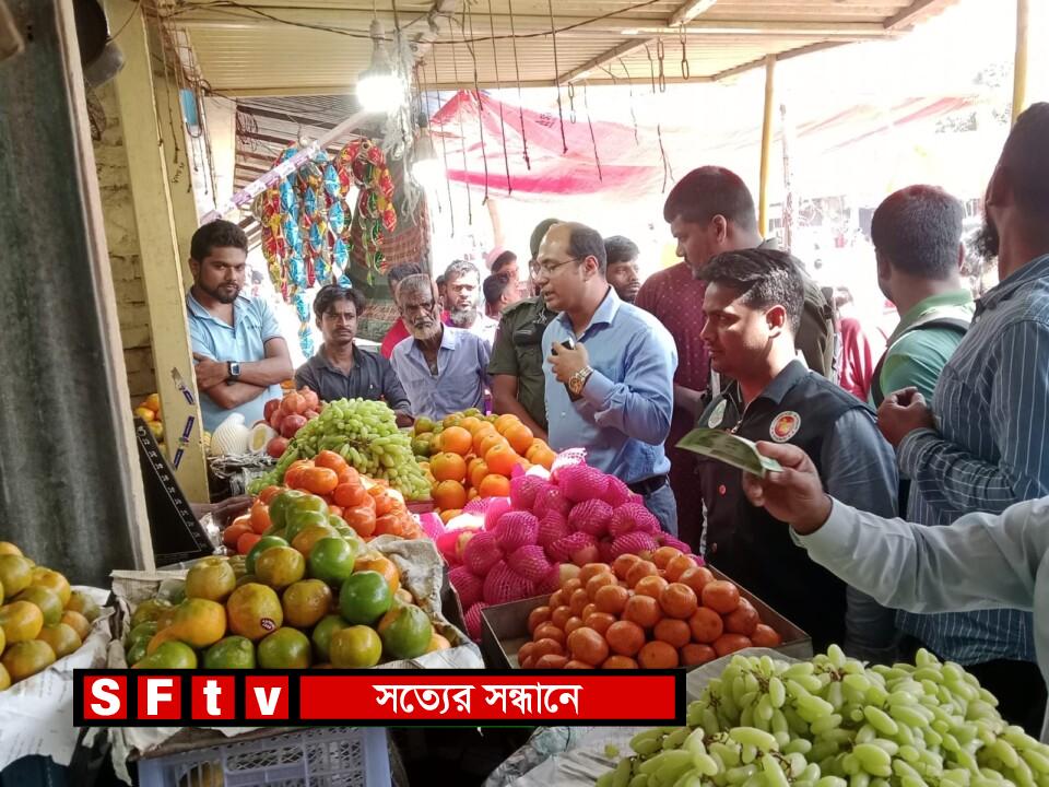 মাসুদ চৌধুরী সাঈদ : পবিত্র মাহে রমজান উপলক্ষে নিত্যপ্রয়োজনীয় পণ্যের মূল্য স্বাভাবিক রাখতে মোবাইল কোর্ট পরিচালনা হয়েছে। ৬ মার্চ বৃহস্পতিবার জেলার শিবালয় উপজেলার আরিচা ফল বাজার এলাকায় মোবাইল কোর্ট পরিচালনা করেন, শিবালয় উপজেলা সহকারী কমিশনার (ভূমি) ও এক্সিকিউটিভ ম্যাজিস্ট্রেট এস এম ফয়েজ আহমেদ। এসময় খেজুর ও তরমুজের অতিরিক্ত মূল্য রাখা, মূল্যতালিকা না থাকা, খাদ্যদ্রব্যে ক্ষতিকর কেমিক্যাল ব্যবহার ও অস্বাস্থ্যকর পরিবেশে খাবার সংরক্ষনসহ বিভিন্ন আপরাধে ০৯ জনকে ৪৫০০০/- জরিমানা করা হয়। অপরাধীরা ১। মোঃ রাজিব শেখ (৩২), পিতা – আনোয়ার শেখ, ২। আনন্দ চন্দ্র সরকার (৫৫), পিতা – অনিল চন্দ্র সরকার, ৩। মোঃ রফিক (৪৮), পিতা – মোঃ শুকুর আলী, ৪। মোঃ আফজাল হোসেন (৪০), পিতা – আবুল হোসেন, ৫। মোঃ জালাল (৪২), পিতা- মঙ্গল মল্লিক, ৬। মোঃ রতন শেখ (৫২), পিতা – প্রিয়নাথ শেখ, ৭। আঃ রাজ্জাক (৩৮), পিতা – মোঃ খতিব উদ্দিন, ৮। মোঃ হাসান শিকদার (৩০), পিতা – মোঃ হোসেন শিকদার, ৯। স্বপন (৫৫), পিতা – প্রিয়নাথ। এস এম ফয়েজ আহমেদ জানান, পুরো রমজান মাস জুড়ে আমাদের এ অভিযান অব্যাহত থাকবে।