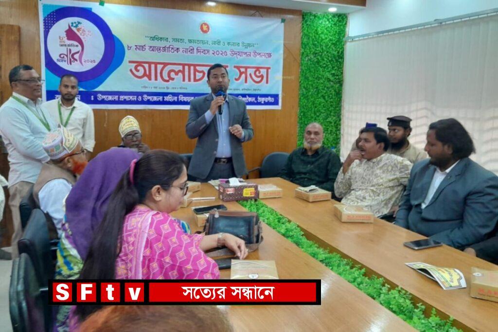 আব্দুল জব্বার : অধিকার,সমতা,ক্ষমতায়ন, নারী ও কন্যার উন্নয়ন প্রতিপাদ্যকে সামনে রেখে ঠাকুরগাঁওয়ের রাণীশংকৈলে আন্তর্জাতিক নারী দিবস পালিত হয়েছে। শনিবার সকালে উপজেলা পরিষদ সভাকক্ষে উপজেলা প্রশাসন ও মহিলা বিষয়ক কর্মকর্তা কার্যালয়ের আয়োজনে দিবসটির আলোচনা সভা অনুষ্ঠিত হয়। আলোচনা সভায় ইউএনও রকিবুল হাসান এর সভাপতিত্বে বক্তব্য রাখেন বিএনপির সভাপতি আতাউর রহমান, জামায়াতের নায়েবে আমির মিজানুর রহমান, সেক্রেটারি রজব আলী, পৌর বিএনপির শাহাজাহান আলী, পৌর জামায়াতের মোকাররম হোসাইন, প্রেসক্লাব সভাপতি আশরাফুল আলম, মহিলা দলের আহবায়ক মনিরা বিশ্বাস,বিএনপির সদস্য সচিব আনার কলি প্রমুখ। দিবসটি উপলক্ষে বিভিন্ন সামাজিক সংগঠন সহ বিভিন্ন এনজিও’র নারী সদস্যরা উপস্থিত হয় এবং স্মারকলিপি প্রদান করেন।