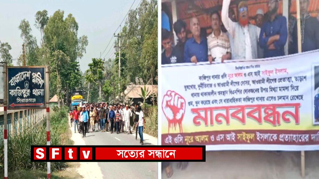 লিমন খান : বাড়িঘরে হামলা ও ভাংচুরের একটি অভিযোগপত্র প্রদানকে কেন্দ্র করে কজিপুর থানার ওসির বিরুদ্ধে পক্ষপাতের অভিযোগ এনে মানববন্ধন করেছেন বিএনপি নেতা মিজানুর রহমান বাবলু।বাবলু উপজেলা বিএনপির সাবেক সাংগঠনিক সম্পাদক। তিনি স্থানীয় এলাকাবাসীকে নিয়ে মানব বন্ধনের প্রস্তুতি নেন। এদিকে মানব বন্ধনের খবর পেয়ে উপজেলা স্বেচ্ছাসেবক দলের যুগ্ন আহবায়ক আসাদুল ইসলামের লোকজন ঘটনাস্থলে চলে আসলে উভয়ের মধ্যে কথাকাটাকাটি ও ধাওয়াধাওয়ির ঘটনা ঘটেছে। এতে করে এক পুলিশ সদস্যসহ অন্তত ১০ জন আহত হয়েছে।শনিবার বেলা ১১ টায় উপজেলার মেঘাই পুরাতন বাজার নামক স্থানে এই ঘটনা ঘটেছে। সরেজমিনে গিয়ে জানা যায়, তুচ্ছ ঘটনাকে কেন্দ্র করে গত ১৪ ডিসেম্বর কাজিপুর উপজেলা বিএনপির সাবেক সাংগঠনিক সম্পাদক মিজানুর রহমান বাবলুর বসতবাড়িতে হামলা ও ভাংচুরের ঘটনা ঘটে। এ ঘটনায় বাবলুর পুত্র মেহেদী হাসান সুমন বাদী হয়ে কাজিপুর উপজেলা স্বেচ্ছাসেবক দলের যুগ্ম আহবায়ক আসাদুল সহ ২৬ জনের নাম উল্লেখ করে থানায় মামলা দায়ের করেন। পরবর্তীতে আসাদুলও মোটরসাইকেল পোড়ানো ও হামলা- ভাংচুরের অভিযোগ এনে গত ১৬ ডিসেম্বর বিএনপি নেতা বাবলুর চার পুত্র সহ ১৪ জনকে আসামী করে থানায় মামলা দায়ের করেন। গত ৫ মার্চ আসাদুলের দায়ের করা মামলার অভিযোগ পত্র দাখিল করে পুলিশ। এতে ক্ষুব্ধ হন বিএনপি নেতা বাবলুও তার লোকজন। তারা ওসির পক্ষপাত মূলক আচরণ ও অপসারনের দাবীতে মেঘাই বাজার এলাকায় মানববন্ধন করার চেষ্টা করে।মিজানুর রহমান বাবলুর দাবী, আসাদুলের লোকজন শান্তিপূর্ণ সমাবেশে লাঠি সোটা নিয়ে হামলা চালায়। হামলায় এক পুলিশ কনষ্টবেল সহ ৫ জন আহত হন। পুলিশ ঘটনাস্থল থেকে তিনটি মোটরসাইকেল উদ্ধার করেছে। বাবলু আরও বলেন, আমার মামলা আগে করা। অথচ পরে করা আসাদুলের মামলার অভিযোগপত্র আদালতে পাঠিয়েছেন ওসি।বিষয়টি কাজিপুরের সবাই জানে। ওসি পক্ষপাত দোষে আক্রান্ত। এবিষয়ে জানতে কাজিপুর উপজেলা স্বেচ্ছাসেবক দলের যুগ্ম আহবায়ক আসাদুলকে ফোন করে তাকে পাওয়া যায়নি।