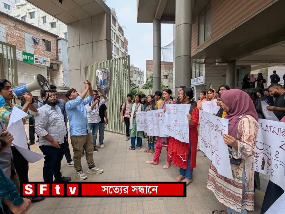 মোঃ হানিফ বিন রফিক : আজ ০৯ মার্চ রোজ রবিবার বেসরকারি বিশ্ববিদ্যাল ইউআইটিএসের শিক্ষার্থীরা প্রতিবাদ মিছিল ও মানববন্ধন কর্মসূচি পালন করে।দুপুর ১২ টার দিকে রাজধানীর বেসরকারি বিশ্ববিদ্যালয় ইউনিভার্সিটি অফ ইনফরমেশন টেকনোলজি এন্ড সাইন্সেস ইউআইটিএস চত্বর থেকে শুরু করে নতুনবাজার এলাকায় কুড়িল-বাড্ডা সড়ক অবরোধ করে বিক্ষোভ করেন তারা। প্রায় দেড় ঘণ্টা বিক্ষোভের পর ৭২ ঘণ্টার আলটিমেটাম দিয়ে ফিরে যান শিক্ষার্থীরা। এতে ইউআইটিএস, ডিআইইউসহ বিভিন্ন বেসরকারি বিশ্ববিদ্যালয়ের শিক্ষার্থীদের পাশাপাশি মানববন্ধনে অংশ নেন প্রায় তিন শতাধিক মানুষ। শিক্ষার্থীরা বলেন, সম্প্রতি দেশের আইনশৃঙ্খলা পরিস্থিতির চরম অবনতি হয়েছে। বিশেষ করে নারী নিপীড়ন, ধর্ষণ অস্বাভাবিক হারে বেড়ে গেছে। মাগুরায় ৮ বছরের শিশুর ওপর পৈশাচিক বর্বরতা চালানো হয়েছে। সারাদেশে এ নিয়ে তোলপাড় হলেও ধর্ষককে গ্রেফতার দেখাতেই দুইদিন সময়ে নিয়েছে পুলিশ। আমরা এর তীব্র নিন্দা ও প্রতিবাদ জানাচ্ছি। মানবন্ধনে নারী শিক্ষার্থী বলেন, “আমরা দেখেছি যে বাংলাদেশের প্রত্যেকটি জেলায় প্রতিনিয়ত ধর্ষণের ঘটনা দেখা যাচ্ছে কিন্তু প্রশাসন এখনো কেন চোখ আমরা এর সুষ্ঠু তদন্ত ও বিচার চাই যেন এই ধর্ষণকারীদের আইনের আওত নিয়ে আসা হয়।