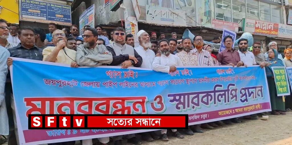 মোঃ আল আমিন : জয়পুরহাটে শিল্প কারখানা ও আবাসিক এলাকায় পাইপলাইনের মাধ্যমে গ্যাস সংযোগ চালুর দাবিতে মানববন্ধন অনুষ্ঠিত হয়েছে। রবিবার (তারিখ উল্লেখ করুন) দুপুরে শহরের জিরো পয়েন্ট পাচুর মোড়ে ঘণ্টাব্যাপী এই মানববন্ধনে বিভিন্ন রাজনৈতিক সংগঠন, ছাত্রসমাজ, শ্রমিকসহ সর্বস্তরের জনগণ অংশ নেন। মানববন্ধনে বক্তব্য রাখেন জেলা বিএনপির সিনিয়র যুগ্ম আহ্বায়ক মাসুদ রানা প্রধান, বিশিষ্ট ব্যবসায়ী আবু রায়হান উজ্জ্বল, আবু বক্কর সিদ্দিক, মনজুরে মওলা পলাশ ও সার্ক মানবাধিকার ফাউন্ডেশনের জেলা শাখার সভাপতি নূর ই আলম। বক্তারা বলেন, জয়পুরহাট থেকে মাত্র ৩৯ কিলোমিটার দূরে বগুড়ার মোকামতলায় গ্যাসের পাইপলাইন থাকলেও জয়পুরহাটবাসী দীর্ঘদিন ধরে এই সুবিধা থেকে বঞ্চিত। শিল্পায়ন ও অর্থনৈতিক উন্নয়নের স্বার্থে অবিলম্বে জয়পুরহাটে গ্যাস সংযোগ চালুর দাবি জানান তারা। মানববন্ধন শেষে জেলা প্রশাসকের মাধ্যমে সরকারের প্রধান উপদেষ্টার কাছে একটি স্মারকলিপি প্রদান করা হয়। বক্তারা দ্রুত সময়ের মধ্যে গ্যাস সংযোগ চালুর বিষয়ে প্রয়োজনীয় পদক্ষেপ গ্রহণের জন্য সরকারের দৃষ্টি আকর্ষণ করেন।