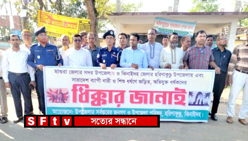এম.টুকু মাহমুদ : মাগুরা জেলা সদর উপজেলার ও ঝিনাইদহ জেলার হরিণাকুন্ডু উপজেলার এবং সারা দেশব্যাপী নারী ও শিশু ধর্ষণে জড়িত অভিযুক্ত ধর্ষকদের ধিক্কার জানানো সহ উপজেলার সর্বস্তরের জনগণ ও হরিণাকুণ্ডু উপজেলা পরিষদের পক্ষ থেকে মানববন্ধন কর্মসূচি পালন করা হয়েছে। মানববন্ধনটি ঝিনাইদহের হরিণাকুণ্ডু উপজেলার দোয়েল চত্বরে অনুষ্ঠিত হয়েছে।বুধবার (১২ মার্চ) উপজেলার সর্বস্তরের জনগণ ও উপজেলা পরিষদের আয়োজনে এই মানববন্ধন কর্মসূচি অনুষ্ঠিত হয়। উক্ত মানববন্ধন কর্মসূচিতে প্রধান অতিথি হিসেবে উপস্থিত ছিলেন, উপজেলা নির্বাহী অফিসার বি.এম.তারিক-উজ-জামান। হরিণাকুণ্ডু থানা অফিসার ইনচার্জ, এমএ রউফ খান,উপজেলা বিএনপির, সাধারণ সম্পাদক, মোঃ তাইজাল হোসেন, উপজেলা কৃষি অফিসার, শরীফ মোহাম্মদ তিতুমীর। এ সময় আরো উপস্থিত ছিলেন,শিশুগুলি মডেল মাধ্যমিক বিদ্যালয়ের শিক্ষক,মোঃ নিয়ামত আলী, বাংলাদেশ স্কাউট উপজেলা শাখার কমিশনার,মতিউর রহমান, উপজেলার সকল গণমাধ্যম সহ সরকারি, বেসরকারি ,রাজনৈতিক পেশাজীবী, সহ সর্বস্তরের জনগণ।