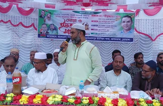 ১২ই মার্চ, ২০২৫, চুয়াডাঙ্গা: চুয়াডাঙ্গা জেলার আলমডাঙ্গা উপজেলার কালিদাসপুর ইউনিয়ন বিএনপির উদ্যোগে সাবেক প্রধানমন্ত্রী ও বিএনপির চেয়ারপার্সন বেগম খালেদা জিয়ার সুস্থতা কামনা করে এক দোয়া ও ইফতার মাহফিল অনুষ্ঠিত হয়।