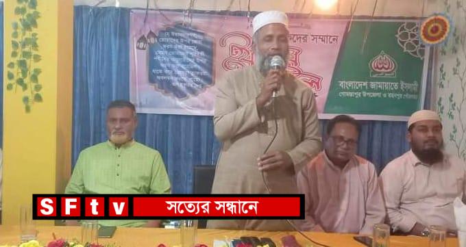 মোঃ রনি রজব : চাঁপাইনবাবগজ্ঞ জেলার জামায়াতে ইসলামী গোমস্তাপুর উপজেলা ও রহনপুর পৌরসভা শাখা আয়োজনে সাংবাদিকদের সম্মানে ইফতার মাহফিল অনুষ্ঠিত হয়।বৃহস্পতিবার (১৩ মার্চ)রহনপুর আলমিজান সুপার মার্কেটে সংক্ষিপ্ত আলোচনা সভায় সভাপতিত্ব করেন উপজেলা আমির ইমামুল হুদা।বক্তব্য রাখেন জেলা সহকারী সেক্রেটারি ও চাঁপাইনবাবগঞ্জ ২ আসনের এমপি পদপ্রার্থী ডা.মিজানুর রহমান,জেলা কর্মপরিষদ সদস্য তরিকুল ইসলাম বকুল, উপজেলা সেক্রেটারি মাওলানা মশিউর রহমান, সাবেক আমির শাহ আলম, রহনপুর পৌর আমির মনিরুজ্জামান,সেক্রেটারি মানিক রায়হান, ছাত্রশিবির জেলা পূর্ব শাখায় সেক্রেটারি আব্দলাহসহ অন্যরা। সাংবাদিকদের মধ্যে বক্তব্য রাখেন উপজেলা প্রেসক্লাব সভাপতি আতিকুল ইসলাম আজম,নাহিদ ইসলাম, নুর মোহাম্মদ, সামিরুল ইসলাম, শাহিন আলম, ইয়াহিয়া খান রুবেল, আলোচনা শেষে দেশ ও জাতির মঙ্গল কামনা করে দোয়া করা হয়।