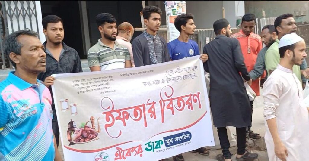 আলমডাঙ্গায় ঐক্যের ডাক যুব সংগঠনের উদ্যোগে পথচারীদের মাঝে ইফতার বিতরণ