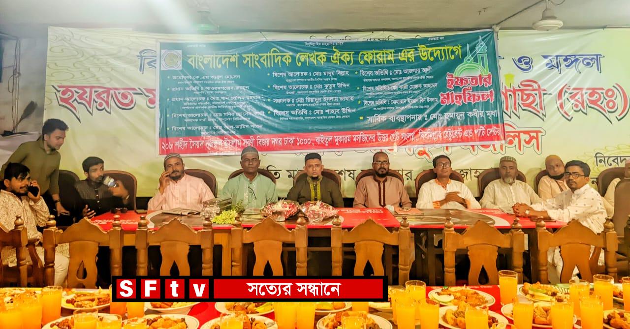 মোঃ তরিকুল ইসলাম : বাংলাদেশ সাংবাদিক লেখক ঐক্য ফোরামের উদ্যোগে রমজানের পবিত্রতা রক্ষায় আমাদের করণীয় ও সাংবাদিকদের নিরাপত্তা বিষয়ক এক আলোচনা সভা এবং ইফতার ও দোয়া মাহফিল অনুষ্ঠিত হয়েছে। শুক্রবার (১৪ মার্চ ২০২৫) বিকেলে ঢাকার বিসমিল্লাহ রেস্টুরেন্ট এন্ড পার্টি সেন্টারে উক্ত অনুষ্ঠানের আয়োজন করা হয়। অনুষ্ঠানের উদ্বোধন করেন, বাংলাদেশ সাংবাদিক লেখক ঐক্য ফোরামের উপদেষ্টা কে এম আবুল হোসেন। বার্তা প্রবাহ পত্রিকার প্রকাশক ও সম্পাদক এবং বিটিএসএফ-এর উপদেষ্টা মোহাম্মদ মনির হোসেন কাজীর সভাপতিত্বে অনুষ্ঠানে প্রধান অতিথি ছিলেন, ঢাকা প্রেসক্লাবের সভাপতি আওরঙ্গজেব কামাল। অনুষ্ঠানে বিশেষ আলোচক ছিলেন, বিটিএসএফ-এর মহাসচিব মোঃ আল-আমিন শাওন, জাতীয় দৈনিক সংবাদ দিগন্ত পত্রিকার ব্যবস্থাপনা সম্পাদক বিটিএসএফ যুগ্ম মহাসচিব মোঃ মাসুম বিল্লাহ, বাংলাদেশ সাংবাদিক লেখক ঐক্য ফোরামের উপদেষ্টা মোঃ কুতুবউদ্দিন। বাংলাদেশ সাংবাদিক লেখক ঐক্য ফোরামের সভাপতি মোঃ রিয়াদুল ইসলাম জামালের সঞ্চালনায় অনুষ্ঠানে সম্মানিত অতিথি ছিলেন, মানবাধিকার প্রেসক্লাবের উপদেষ্টা মাহবুব হাসান স্বাধীন, ঢাকা প্রেসক্লাবের যুগ্ন-সম্পাদক ও দৈনিক নিউজের সম্পাদক মোঃ ওবাইদুল ইসলাম, দপ্তর সম্পাদক কে এম মোহম্মাদ হোসেন রিজভী, সংগঠনের সহ-সভাপতি মোঃ শাহাব উদ্দিন, সাংবাদিক মোহাম্মদ ইসমাইল হোসেন। অনুষ্ঠানের সার্বিক ব্যবস্থাপনায় ছিলেন,বাংলাদেশ সাংবাদিক লেখক ঐক্য ফোরামের সহ-সভাপতি হুমায়ুন কবির মৃধা। উক্ত ইফতার মাহফিলে দোয়া ও মোনাজাত পরিচালনা করেন, ঢাকা প্রেসক্লাবের সভাপতি আওরঙ্গজেব কামাল।
