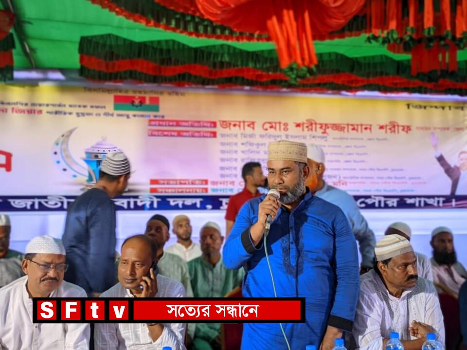 তিনি বলেন, ‘আজকের এই ইফতার আয়োজন থেকে একটি স্পষ্ট বার্তা হলো—স্বৈরাচারী ও ফ্যাসিবাদী সরকারকে পতনের জন্য যে ১৬ বছরের আন্দোলন ও সংগ্রাম চলেছে, তাতে বহু নির্যাতন, জুলুম ও সংঘর্ষের মধ্য দিয়েও আমরা এগিয়ে গিয়েছি। আমরা বিগত ১৬ বছর ধরে ‘আমার ভোট আমি দেব, যাকে খুশি তাকে দেব’—এই অধিকারের জন্য লড়াই করেছি। এখন সময় এসেছে গণতন্ত্র পুনঃপ্রতিষ্ঠার লক্ষ্যে আমাদের ঐক্যবদ্ধভাবে কাজ করার। যতদিন পর্যন্ত দেশে প্রকৃত গণতান্ত্রিক প্রক্রিয়ায় নির্বাচন নিশ্চিত না হয়, ততদিন ছাত্র সমাজ, বিএনপির অঙ্গসংগঠন এবং ধানের শীষের প্রতিটি ভোটার ও সমর্থককে একসঙ্গে কাঁধে কাঁধ মিলিয়ে কাজ করে যেতে হবে।’ শরীফুজ্জামান শরীফ বলেন, ‘দীর্ঘ ১৬ বছর সুযোগ না থাকার পরেও আমরা গণতন্ত্র চর্চায় রাজপথে থেকেছি। এখন সময় এসেছে—সামাজিক ও রাজনৈতিকভাবে পূর্ণাঙ্গরুপে সক্রিয় থাকার, গণতন্ত্র পুনরুদ্ধারের লক্ষ্যে আমাদের দায়িত্ব পালনে সর্বচ্চ দিয়ে কাজ করে যাওয়ার।’ তিনি বলেন, ‘আমি বিএনপির নেতৃবৃন্দ ও অঙ্গসংগঠনের সবাইকে স্মরণ করিয়ে দিতে চাই—এই লড়াই কেবল একটি নির্বাচনকে ঘিরে নয়, এটি গণতন্ত্র প্রতিষ্ঠার আন্দোলন। আসুন, ঐক্যবদ্ধ থেকে আমাদের লক্ষ্য অর্জনে এগিয়ে যাই।’