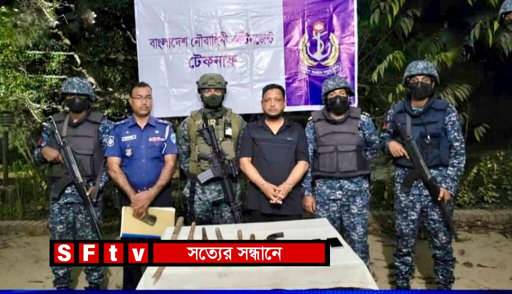 জামাল উদ্দীন : কক্সবাজারের টেকনাফে হ্নীলা সমবার (১৭ মার্চ) গণমাধ্যমে এ তথ্য নিশ্চিত করেন টেকনাফ নৌবাহিনীর কন্টিনজেন্ট কমান্ডার লে. শাহরিয়ার নিশাত,তিনি জানান- গোপন সংবাদের ভিত্তিতে নৌবাহিনী ও পুলিশ যৌথ অভিযান চালিয়ে বিপুল পরিমাণ অবৈধ অস্ত্রসহ জাহাঙ্গীর নামের একজনকে গ্রেফতার করেছে। উপজেলার হ্নীলা ইউনিয়নের ৮ নং ওয়ার্ডের লেদা টাওয়ার এলাকায় শীর্ষ অস্ত্র ও মাদক ব্যবসায়ী সন্ত্রাসী জাহাঙ্গীর এর বাড়িতে অভিযান পরিচালনা করা হয়। এ সময় তার পুরো বাড়ি তল্লাশি চালিয়ে ১ টি আগ্নেয়াস্ত্র, ৩ তাজা গোলা, ৪টি দেশীয় ধারালো অস্ত্র ও ২ টি মোবাইল উদ্ধার সহ তাকে আটক করা হয়। ব্যবসায়ী জাহাঙ্গীর (৪৮) হ্নীলা ইউপির লেদা এলাকার মীর কাসেম এর ছেলে। নৌবাহিনীর কন্টিনজেন্ট কমান্ডার আরো জানান -উক্ত আসামি দীর্ঘ দিন যাবত বিভিন্ন অপরাধমূলক কর্মকাণ্ডে জড়িত ছিল বলে স্থানীয় সূত্রে জানা গেছে। উক্ত আসামিকে টেকনাফ মডেল থানায় হস্তান্তর করা হয়েছে