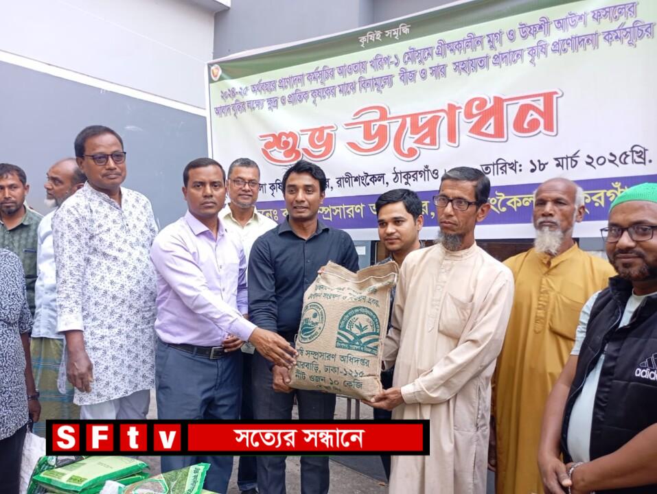 আব্দুল জব্বার : ঠাকুরগাঁওয়ের রাণীশংকৈলে চলতি অর্থবছরে গ্রীষ্মকালীন মুগ ও উফশী আউশ ফসলের আবাদ বৃদ্ধির লক্ষ্যে কৃষি প্রণোদনার আওতায় ক্ষুদ্র ও প্রান্তিক কৃষকদের মাঝে বিনামূল্যে বীজ-সার বিতরণ কার্যক্রমের উদ্বোধন করা হয়েছে। মঙ্গলবার (১৮মার্চ) দুপুরে রাণীশংকৈল উপজেলা কৃষি সম্প্রসারণ অধিদপ্তরের আয়োজনে কৃষি অফিস প্রাঙ্গনে কৃষকদের মাঝে ফসল বৃদ্ধির লক্ষ্যে বীজ-সার বিতরণের উদ্বোধন করা হয়।
