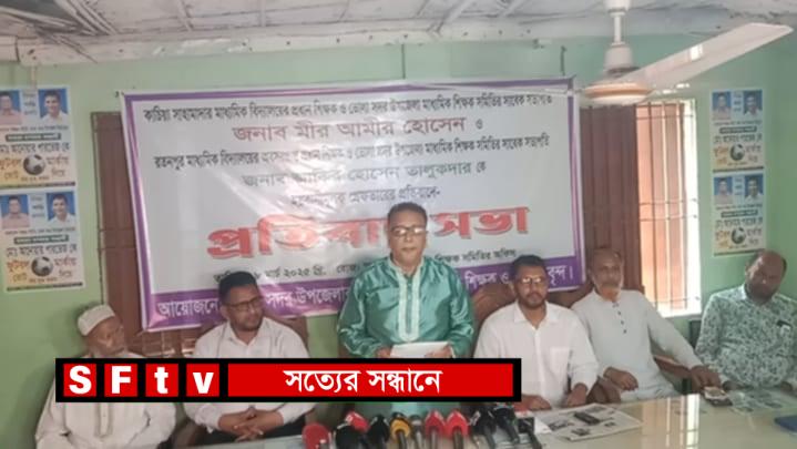 মোঃ আব্দুর রহমান : দুই প্রধান শিক্ষক গ্রেফতারের প্রতিবাদে ভোলা সদর উপজেলার শিক্ষক সমিতি প্রতিবাদ সভা করে নিন্দা জানিয়েছেন। মঙ্গলবার (১৮ই মার্চ) দুপুর আড়াইটার দিকে ভোলা সদর উপজেলার মাধ্যমিক শিক্ষক সমিতির (কামরুজ্জামান গ্রুপ) কার্যালয় এ প্রতিবাদ সভা করেন শিক্ষক নেতারা। প্রতিবাদ সভায় শিক্ষক সমিতি ভোলা সদর উপজেলার সভাপতি মেজবাহ উদ্দিন আহম্মেদ ও সাধারণ সম্পাদক আনোয়ার পারভেজ লিখিত বক্তব্যে বলেন, ভোলা জেলা ছাত্রদলের সাবেক সভাপতি শহীদ নূরে আলম ও শহীদ আঃ রহিমকে নির্মমভাবে হত্যা করা হয়েছে। এটা নিন্দনীয় ঘটনা এবং অমানবিক। সত্যিকারের অভিযুক্তদের আমরা বিচার চাই কিন্তু এই মামলার প্রকৃত আসামিদের গ্রেফতার না করে ভোলা সদর উপজেলার কাচিয়া সাহামাদার মাধ্যমিক বিদ্যালয়ের প্রধান শিক্ষক ও ভোলা সদর উপজেলা মাধ্যমিক শিক্ষক সমিতির সাবেক সভাপতি জনাব মীর আমীর হোসেন এবং রতনপুর মাধ্যমিক বিদ্যালয়ের অবসরপ্রাপ্ত প্রধান শিক্ষক ও ভোলা সদর উপজেলার মাধ্যমিক শিক্ষক সমিতির সাবেক সভাপতি জনাব মোঃ জাকির হোসেন তালুকদারকে গ্রেফতার করা হয়। এই ঘটনার সাথে নিরপেক্ষ ও নিরীহ শিক্ষকদের জড়ানো এটা শিক্ষক সমিতির নেতৃবৃন্দ উদ্বেগ প্রকাশ করছি এবং তীব্র নিন্দা ও প্রতিবাদ জানাচ্ছি। আমরা দাবী করি সঠিক তদন্তের মাধ্যমে প্রকৃত দোষীদের চিহ্নিত করে আইনের আওতায় আনা হোক এবং গ্রেপ্তারকৃত নিরপরাধ শিক্ষকদের অবিলম্বে মুক্তি দেওয়া হোক। তিন বছর পূর্বে অর্থাৎ ২০২২ সালের ৩১শে জুলাই বিদ্যুতের লোডশেডিং এবং জ্বালানি খাতে ‘অব্যবস্থাপনার’ প্রতিবাদে সারাদেশে বিএনপির কর্মসূচির অংশ হিসেবে জেলা সদরেও বিক্ষোভ সমাবেশ ও মিছিলের কর্মসূচি ছিলো। সেদিন নেতা-কর্মীরা জেলা কার্যালয়ের সামনে সমাবেশ করে মিছিলের প্রস্তুতি নিলে পুলিশের সঙ্গে সংঘাত বাধেঁ। পুলিশ-বিএনপির সংঘর্ষে ভোলা জেলা ছাত্রদল সভাপতি নুরে আলম ও স্বেচ্ছাসেবক দল নেতা মো. আবদুর রহিম নিহত হয়। এ ঘটনায় পুলিশ বাদী হয়ে ভোলা সদর মডেল থানায় একটি মামলা দায়ের করেন। অন্যদিকে শহীদ আব্দুর রহিমের স্ত্রী বাদী হয়ে ভোলা চীফ জুডিশিয়াল ম্যাসিষ্ট্রেট কোর্টে তৎকালীন সদর থানার ওসি (তদন্ত) আরমানকে এক নাম্বার আসামি করে পুলিশের বিরুদ্ধে হত্যা মামলা দায়ের করেন। পুলিশের দায়ের করা মামলায় এই দুই শিক্ষকদের অজ্ঞাত আসামি দেখিয়ে ১৬ই মার্চ দিবাগত রাত গ্রেফতার করে পরেরদিন কোর্টে প্রেরণ করা হয়েছে। এসময় উপস্থিত ছিলেন, ইলিয়াছ মিয়া মাধ্যমিক বিদ্যালয়ের প্রধান শিক্ষক মোহাম্মদ হেলাল উদ্দিন, গঙ্গাপুর মাধ্যমিক বিদ্যালয়ের প্রধান শিক্ষক মোহাম্মদ নিজাম উদ্দিন, তইয়েবা খাতুন মাধ্যমিক বিদ্যালয়ের প্রধান শিক্ষক মোহাম্মদ রিয়াজ উদ্দিন। ভেদুরিয়