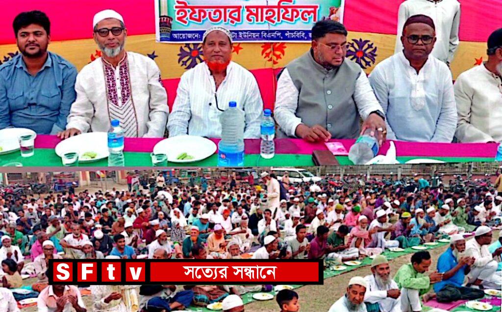 পাঁচবিবি উপজেলার বালিঘাটা ইউনিয়ন বিএনপি ও সহযোগী সংগঠনের নেতাকর্মীদের উদ্যোগে এক ইফতার ও দোয়া মাহফিল অনুষ্ঠিত হয়েছে। সাবেক প্রধানমন্ত্রী দেশনেত্রী বেগম খালেদা জিয়া’র সুস্থতা এবং বিএনপির ভারপ্রাপ্ত চেয়ারম্যান দেশনায়ক তারেক রহমানের দীর্ঘায়ু কামনায় এই মাহফিলের আয়োজন করা হয়। বুধবার বিকালে নওদা সরকারী প্রাথমিক বিদ্যালয় মাঠে ইউনিয়ন বিএনপির সভাপতি আব্দুস সোবাহান মহুড়ীর সভাপতিত্বে অনুষ্ঠিত এই মাহফিলে বক্তারা আগামী জাতীয় সংসদ নির্বাচনে বিএনপির বিজয় নিশ্চিত করতে বিএনপির ৩১ দফা বাস্তবায়ন ও দলকে শক্তিশালী করার লক্ষ্যে আলোচনা করেন। প্রধান অতিথি হিসেবে বক্তব্য রাখেন, জয়পুরহাট জেলা বিএনপির যুগ্ম-আহ্বায়ক মোঃ মাসুদ রানা প্রধান। অনুষ্ঠানে আরো বক্তব্য রাখেন পাঁচবিবি থানা বিএনপির সভাপতি মোঃ সাইফুল ইসলাম ডালিম, সা: সম্পাদক আব্দুল হান্নান চৌধুরী, সাবেক সভাপতি বীর মুক্তিযোদ্ধা জহুরুল আলম তরফদার রুকু, বালিঘাটা ইউনিয়ন বিএনপির সাধারণ সম্পাদক মোঃ রাশেদুল ইসলাম মেম্বার, মোহাম্মদপুর ইউনিয়ন বিএনপির সাধারণ সম্পাদক মোঃ ফারুক হোসেন, সাবেক ভিপি ছাত্রনেতা মোঃ সাইফুল ইসলাম পিন্টু, থানা কৃষক দলের আহ্বায়ক রাহিদ হোসেন, থানা ছাত্রদলের সভাপতি মোঃ ফয়সাল হোসেন আপেল, পৌর ছাত্রদলের আহ্বায়ক রাব্বিউল ইসলাম রকি সহ অন্যান্য নেতৃবৃন্দ। সঞ্চালনা করেন,থানা ছাত্রদলের সাবেক সভাপতি মোঃ জনাবুর রহমান জনি এবং বালিঘাটা ইউনিয়ন বিএনপির সহ-সভাপতি সাবেক পল্লী বিদ্যুৎ পরিচালক মোঃ রেজাউল করিম মাস্টার। অনুষ্ঠান শেষে দেশ ও জাতির মঙ্গল কামনায় দোয়া ও মোনাজাত অনুষ্ঠিত হয়।