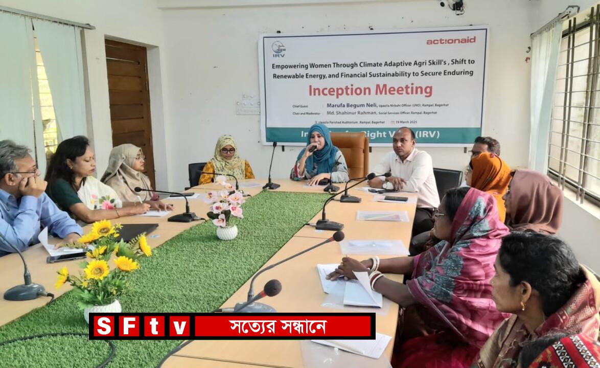 তরিকুল মোল্লা : বাগেরহাটের রামপালে জলবায়ু অভিযোজিত কৃষি দক্ষতার মাধ্যমে নারীর ক্ষমতায়ন, পুনর্নবীকরণযোগ্য শক্তির প্রসার এবং স্থায়িত্বশীল অর্থনৈতিক উন্নয়ন নিশ্চিতকরণে অবহিতকরণ সভা অনুষ্ঠিত হয়েছে। বুধবার (১৯ মার্চ) দুপুরে উপজেলা সম্মেলন কক্ষে ইনিশিয়েটিভ রাইট ভিউ (আরআইভি) ও একশন এইডের সহযোগিতায় এই সভার আয়োজন করা হয়। সভায় প্রধান অতিথি হিসেবে উপস্থিত ছিলেন রামপাল উপজেলা নির্বাহী কর্মকর্তা (ইউএনও) মারুফা বেগম নেলী। এছাড়া সভায় মডারেটর হিসেবে দায়িত্ব পালন করেন উপজেলা সমাজসেবা কর্মকর্তা মো. শাহিনুর রহমান। বিশেষ অথিতির বক্তব্য দেন উপজেলা যুব উন্নয়ন শরিফুল ইসলাম, উপজেলা মহিলা বিষয়ক কর্মকর্তা মহিলা বিষয়ক কর্মকর্তা কানিজ ফাতিমা শেফা, প্রেসক্লাব রামপাল'র সভাপতি এম, এ সবুর রানা, সাংবাদিক ও পরিবেশ যোদ্ধা এস এম আবু তালেব প্রমুখ। অনুষ্ঠানে একশন এইড বাংলাদেশের ডেপুটি ম্যানেজার অমিত রঞ্জন দে, ইনিশিয়েটিভ রাইট ভিউ (আরআইভি)'র প্রধান নির্বাহী মেরিনা পারভিন, ক্লাইমেট রেজিলিয়েন্ট ফার্মিং মার্কেট এক্সেস প্রকল্পের কো-অর্ডিনেটর সৌরভ ভদ্র, ফিল্ড ফ্যাসিলিটেটর আলিমুজ্জামান ও আলভিনা মেহেজাবীনসহ সংশ্লিষ্টরা বক্তব্য রাখেন। ইউএনও মারুফা বেগম নেলী বলেন, জলবায়ু পরিবর্তনের অভিঘাত মোকাবিলায় অভিযোজিত কৃষির বিকাশ এবং নারীদের অংশগ্রহণ নিশ্চিত করা অত্যন্ত গুরুত্বপূর্ণ। এ ধরনের উদ্যোগ কৃষকদের টেকসই কৃষি অনুশীলনে সহায়তা করবে। গত তিন বছরে রামপালের ভোজপাতিয়া ও উজুলকুড় ইউনিয়নে জলবায়ু অভিযোজিত কৃষি প্রকল্পে প্রায় ৯২ লাখ ২০ হাজার টাকা ব্যয় হয়েছে। আগামী তিন বছরে আরও ৫০০ নারীকে জলবায়ু সহনশীল কৃষি উপকরণ বিতরণ ও নবায়নযোগ্য শক্তি সুবিধা প্রদান করা হবে। এ প্রকল্পের মাধ্যমে উপকূলীয় নারীদের টেকসই কৃষিতে অন্তর্ভুক্ত করতে প্রতিশ্রুতিবদ্ধ সংশ্লিষ্টরা।প্রকল্পটি শেষ হবে ২৭ সালের ডিসেম্বর মাসে।