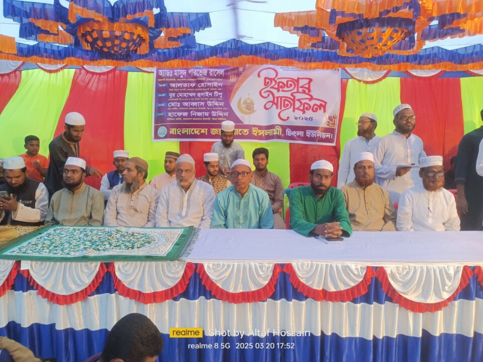 চুয়াডাঙ্গা জেলার চিৎলা ইউনিয়নে বাংলাদেশ জামায়াতে ইসলামী জি এ সাংগঠনিক থানার উদ্যোগে এক ইফতার মাহফিল অনুষ্ঠিত হয়েছে। বৃহস্পতিবার (২০ মার্চ) বাদ আসর থেকে ইউনিয়ন আমীর হাফেজ নিজাম উদ্দিনের সভাপতিত্বে এবং টিম সদস্য আবু বকরের পরিচালনায় এই মাহফিল অনুষ্ঠিত হয়।