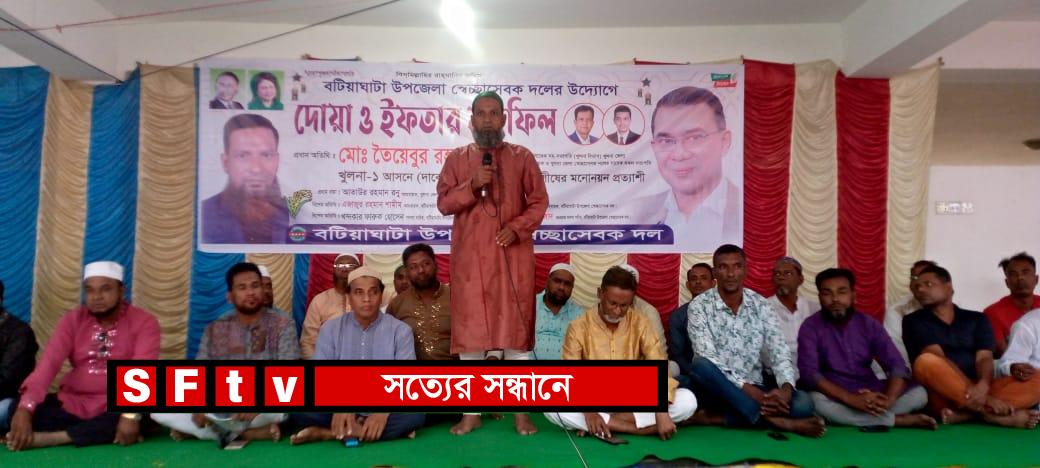 মোঃ ইমরান : বটিয়াঘাটা উপজেলায় স্বেচ্ছাসেবক দলেরউদ্যোগে দোয়া ও ইফতার মাহফিল অনুষ্ঠিত ২১ ই মার্চ শুক্রবার বিতাকাল ৫ টায় বটিয়াঘাটা উপজেলায় স্বেচ্ছাসেবক দলের উদ্যোগে শহীদ রাষ্ট্রপতি জিয়াউর রহমানের রুহের মাগফেরাত সাবেক প্রধানমন্ত্রী বিএনপি চেয়ারপার্সন দেশনেত্রী বেগম খালেদা জিয়ার রোগ মুক্তি এবং বিএনপির ভারপ্রাপ্ত চেয়ারম্যান দেশনায়ক তারেক রহমানের দীর্ঘায়ু কামনায় দোয়া ও ইফতার মাহফিল অনুষ্ঠিত হয়। বটিয়াঘাটা উপজেলা আহব্বায়ক ব্রজেন ঢালীর সভাপতিত্বে,মেহেদী আল আজাদের সঞ্চালনায় উক্ত দোয়া ও ইফতার মাহফিলে প্রধান অতিথি হিসেবে উপস্থিত ছিলেন খুলনা-১ আসনে (দাকোপ-বটিয়াঘাটা) ধানের শীষের মনোনয়ন প্রত্যাশী মোঃ তৈয়েবুর রহমান।প্রধান বক্তা অতিথি হিসেবে উপস্থিত ছিলেন খুলনা জেলা স্বেচ্ছাসেবক দলের আহ্বায়ক আতাউর রহমান রনু,বিশেষ অতিথি হিসেবে উপস্থিত ছিলেন বটিয়াঘাটা উপজেলা বিএনপির আহ্বায়ক এতাজুর রহমান শামীম।বটিয়াঘাটা উপজেলা বিএনপির সদস্য সচিব খন্দকার ফারুক হোসেন, আহবায়ক বটিয়াঘাটা উপজেলা উপজেলা যুব দল আবুবক্কার নিরু, রুহুল মোমীন লিটন ১নং জলসা ইউঃ নিঃ বিএনি আহ্বায়ক, খুলনা জেলা মুক্তিযোদ্ধা দলের সভাপতি বীর মুক্তিযোদ্ধা কামরুল ইসলাম,সাবেক সদস্য খুলনা জেলা বিএনপি৷ বটিয়াঘাটা উপজেলা মুক্তিযুদ্ধা দলের সভাপতি বীর মুক্তিযোদ্ধা জিয়াউর রহমান জিকু সাইফুর রহমান মেম্বার, সাবেক যুগ্ম আহ্বায়ক, বটিয়াঘাটা উপারলা বি,এন,পি,সাবেক চেয়ারম্যান সুরখালি ইউনিয়ন যুগ্ম আহবাযুক জেলা স্বেচ্ছাসেবক দল কামরুল ইসলাম সিফার, আজিদুল ইসলাম জেলা মৎসজীবী দল আতাউর রহ রহমান গিঃ যুগ্ম আহবায়ক, রফিকুল ইসলাম, যুগ্ম আহবাযুকজেলা স্বেচ্ছাসেবক দল,লিটন মোল্লাযুগ্ম আহবাযুক জেলা স্বেচ্ছাসেবক দল,রফিকুল ই ইসলাম (যুগ্ম আহবাবক)হুমায়ুন কবির।আবু তাহের হিরা)সেঃ রয়েল (সদস্যনয়ন মোড়ল অমল মন্ডল,জি এম রাজিব, ফজলুর রহমান বাবু মোঃ আব্দুর রবুাক- সিনিস্টর যুগ্ম-আরব দাকোপ উপজেলা, আহ্বায়ক বটিয়াঘাটা উপজেলা মহিলা দল মেহের আফরোজ সুইটি মোঃ শাকিল সাবেক আহ্বায়ক বটিয়াঘাটা উপজেলা ছাত্র দল শাকিল আহম্মেদ, এছাড়াও বিএনপির অঙ্গ সহযোগী সংগঠনের নেতা-কর্মী সমর্থকদের মধ্যে ইফতার বিতরণ করেন, এসময় প্রধান অতিথি তার বক্তব্য বলেন বিগত আমলে জুলুম নির্যাতনের শিকার হয়েছি তবুও দলের বাইরে বদনাম হয় কোন কাজ করিনাই, বর্তমানে দলে সুজোগ সন্দানি দের যায়গা দিয়ে বিএনপির বদনাম নাহয় নেতা কর্মীদের সজাগ দৃষ্টি রাখতে আহবান জানান, দলথেকে আমাকে নমিনেশন দিলে আমি দাকোপ বটিয়াঘাটা মানুষের ভাগ্যে উন্নয়নে নিজেকে নিয়োজিত থাকবো,
