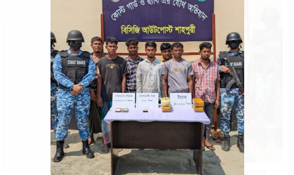 কক্সবাজার টেকনাফ শনিবার ২২ মার্চ ২০২৫ তারিখ দুপুরে কোস্ট গার্ড মিডিয়া কর্মকর্তা লেফটেন্যান্ট কমান্ডার সিয়াম-উল-হক জানান, গোপন সংবাদের ভিত্তিতে আজ ২২ মার্চ ২০২৫ তারিখ শনিবার মধ্যরাত ২ টায় কোস্ট গার্ড পূর্ব জোন অধীনস্থ বিসিজি আউটপোস্ট শাহপরী এবং র্যাব -১৫ সিপিসি-১ এর সমন্বয়ে টেকনাফ থানাধীন মহেশখালীয়া পাড়া হ্যাচারি সংলগ্ন সমুদ্র এলাকায় একটি যৌথ অভিযান পরিচালনা করা হয়। অভিযান পরিচালনাকালে উক্ত এলাকায় একটি ইঞ্জিন চালিত কাঠের বোটে ইঞ্জিন রুমের ভিতরে একটি ব্যাগের মধ্যে বিশেষ ভাবে লুকায়িত অবস্থায় ৪০,০০০ হাজার পিস ইয়াবাসহ ০৭ জন ইয়াবা পাচারকারী আটক করা হয়। আটকৃত পাচারকারী: সুলতান আহমেদ ৩৫ জাহাঙ্গীর হোসেন (২৬), আব্দুল্লাহ (২০), রিয়াজ উদ্দীন (১৯), আব্দুল মান্নান (২৫),কামাল হোসেন (৩০)জাহাঙ্গীর আলম (২৯) সকলেই টেকনাফ এর বাসিন্দা। তিনি আরও বলেন, ‘দেশের আইনশৃঙ্খলা পরিস্থিতি স্থিতিশীল রাখতে বাংলাদেশ কোস্টগার্ড ২৪ ঘণ্টা টহল জারি রেখেছে। যার মাধ্যমে কোস্টগার্ডের আওতাধীন উপকূলীয় এবং নদী তীরবর্তী অঞ্চলের আইনশৃঙ্খলা পরিস্থিতি অনেকাংশে উন্নত হয়েছে। কোস্ট গার্ড ভবিষ্যতেও এ ধরনের অভিযান অব্যাহত রাখবে