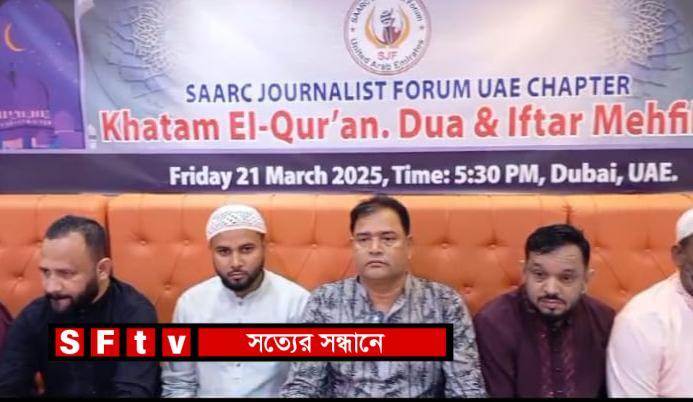 সার্ক সাংবাদিক ফোরাম সংযুক্ত আরব আমিরাত চ্যাপ্টারের উদ্যোগে ইফতার ও দোয়া মাহফিলের আয়োজন করা হয়েছে। গতকাল দেরা দুবাইয়ের নাখিলস্থ মনপুরা রেস্টুরেন্টে বিভিন্ন শ্রেণী পেশার গণমাধ্যম কর্মীদের উপস্থিতিতে এ আয়োজন করা হয়। চ্যানেল এস আমিরাত প্রতিনিধি এবং সার্ক সাংবাদিক ফোরাম সংযুক্ত আরব আমিরাত চ্যাপ্টারের সভাপতি শামসুর রহমান সোহেলের সভাপতিত্বে প্রধান অতিথি ছিলেন দুবাইয়ের বিশিষ্ট ব্যবসায়ী ও দানবীর মোহাম্মদ রুবেল মিয়া। বিশেষ অতিথি হিসেবে উপস্থিত ছিলেন সালমান-সুমন ক্লিনিং সার্ভিস এর ব্যবস্থাপনা পরিচালক মোঃ সুমন, ফাস্ট আবুধাবি ব্যাংকের কর্মকর্তা মোহাম্মদ ফরিদ উদ্দিন মজুমদার, বাংলাদেশ রিপোর্টার্স ইউনিটি, ইউএইর সভাপতি সিরাজুল হক, বাংলাদেশ রিপোর্টার্স ইউনিটির উপদেষ্টা মাহবুব হাসান হৃদয়, সংযুক্ত আরব আমিরাত বিএনপির আহ্বায় কমিটির সদস্য প্রকৌশলী মাহে আলম, দুবাই শ্রমিক দলের সভাপতি তরিকুল ইসলাম, প্রবাস ক্লাবের সভাপতি ফয়জুল্লাহ শহীদ ফয়সাল, সার্ক সাংবাদিক ফোরামের সিনিয়র সহ-সভাপতি সঞ্জিত কুমার শীল, সংগঠনের সহ-সভাপতি সাগর চন্দ্র স্বপন, যুগ্ম সম্পাদক সরোয়ার উদ্দিন রনি, সাংগঠনিক সম্পাদক ওবায়দুল হক মানিক, দপ্তর সম্পাদক শরিফুল ইসলাম, সদস্য কাজী নেজামউল্লাহ ও মোহাম্মদ জাহেদ হোসেনসহ স্থানীয় গণ্যমান্য ব্যক্তিরা। অনুষ্ঠানের শুরুতে পবিত্র কোরআন থেকে তেলাওয়াত করেন সার্ক সাংবাদিক ফোরাম আমিরাত চ্যাপ্টারের সাংগঠনিক সম্পাদক ওবায়দুল হক মানিক। পরে আলোচকরা রমজানের তাৎপর্য তুলে ধরেন। আলোচকরা বলেন, সার্ক সাংবাদিক ফোরাম সংযুক্ত আরব আমিরাতে বস্তুনিষ্ঠ সংবাদ পরিবেশনের মাধ্যমে সাধারণ মানুষের পাশে দাঁড়িয়েছে। সকলকে ঐক্যবদ্ধ করে কাজ করতে সক্ষমতা অর্জন করেছে। আগামীতে সার্ক সাংবাদিক ফোরাম মানব কল্যাণে কাজ করে আরো এগিয়ে যাবে বলে আশাবাদ ব্যক্ত করেন বক্তারা। শেষে প্রবাস ক্লাবের সভাপতি ফয়জুল্লাহ শহীদ দোয়া ও মোনাজাতের মাধ্যমে অনুষ্ঠানের সমাপ্তি ঘোষণা করেন।