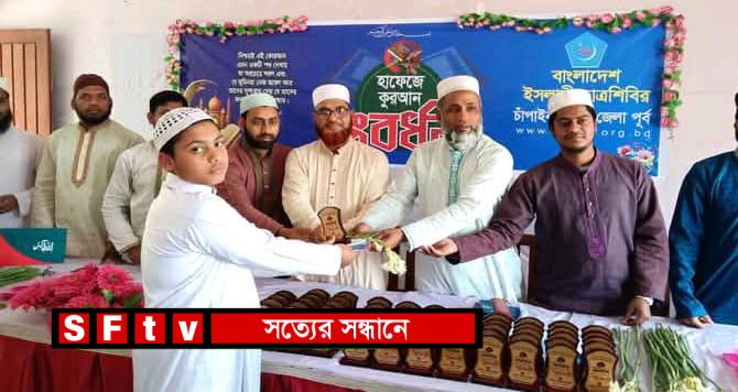 মোঃ রনি রজব : বাংলাদেশ ইসলামী ছাত্রশিবির চাঁপাইনবাবগঞ্জ জেলা পূর্ব শাখা আয়োজিত হাফেজে কুরআন সংবর্ধনা অনুষ্ঠান অনুষ্ঠিত হয়। বৃহস্পতিবার (২৭মার্চ)সকাল ১০ টায় রহনপুর কামিল মাদ্রাসায় ভোলাহাট, গোমস্তাপুর, নাচোল উপজেলার ১০০ জন হাফেজকে সংবর্ধনা প্রদান করেন। চাঁপাইনবাবগঞ্জ জেলা পূর্ব শাখা সভাপতি মোঃ সালাউদ্দিন সোহাগের সভাপতিত্বে প্রধান অতিথির বক্তব্য দেন চাঁপাইনবাবগঞ্জ জেলা জামায়াতের ইসলামীর সেক্রেটারী অধ্যাপক মাওলানা আবু বকর।সেক্রেটারি মোঃ আব্দুল্লাহ সঞ্চালনায় বিশেষ অতিথির বক্তব্য দেন জেলা জামায়াতে সহকারী সেক্রেটারি চাঁপাইনবাবগঞ্জ- ২ আসনের এমপি পদপ্রার্থী ডাঃ মিজানুর রহমান, চাঁপাইনবাবগঞ্জ শহর শাখা ছাত্র শিবিরের সাবেক সভাপতি আব্দুর রাকিবসহ জেলা ও উপজেলা শাখার নেতৃবৃন্দ। সভাপতি মোঃ সালাউদ্দিন সোহাগ বলেন, মহা গ্রন্থ আল কুরআনের হাফেজদের নিয়ে সংবর্ধনার আয়োজন করতে পেরে আমরা মহান আল্লাহর শুকরিয়া আদায় করছি। রাসুল (সা.)বলেছেন কুরআন তিলাওয়াতকারীরা আল্লাহর পরিজন এবং তার বিশেষ বান্দা।আগামীর বাংলাদেশ কে সন্ত্রাস, দূর্নীতি এবং সকল প্রকার অন্যয় থেকে মুক্ত করে ইনসাফপূর্ন আদর্শের ভিত্তিতে গড়তে হলে অবশ্যই কুরআন প্রেমীদের সমাজ গড়ার কাজে এগিয়ে আসতে হবে। আমরা বিশ্বাস করি, কুরআন প্রেমিরা সচেতন ভাবে এই পথে এগিয়ে আসলেই আগামীর বাংলাদেশ ইসলামের বাংলাদেশ হিসেবে পরিগণিত হবে ইনশাআল্লাহ।’