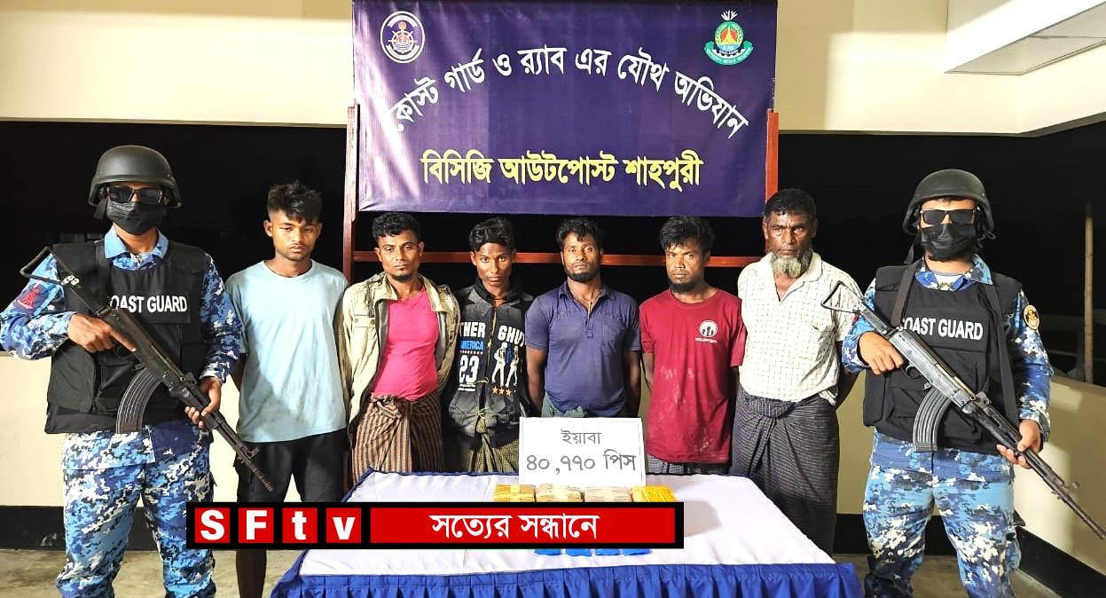 তিনি বলেন, গোপন সংবাদের ভিত্তিতে শনিবার কোস্ট গার্ড আউটপোস্ট শাহপরী এবং র্যাব-১৫ সিপিসি-১ এর সমন্বয়ে টেকনাফ থানাধীন জোড় টাওয়ার সমুদ্র এলাকায় একটি যৌথ অভিযান পরিচালনা করা হয়। অভিযান চলাকালীন উক্ত এলাকায় একটি সন্দেহজনক ইঞ্জিন চালিত কাঠের বোট তল্লাশি করে ৪০ হাজার ৭৭০ পিস ইয়াবাসহ ছয়জন মাদক পাচারকারীকে আটক করতে সক্ষম হয়। আটকরা হলেন আমির সুলতান (৫২), রবি আলম (৪২), দ্বীল মোহাম্মদ (৩৮), নূরুন্নবী (২৮), ঈমান হোসেন (৩২) ও জায়েদ হোসেন (১৮)। তারা সকলেই মিয়ানমারের নাগরিক বলে জানা যায়। তাদের বিরুদ্ধে সংশ্লিষ্ট ধারায় মামলা পক্রিয়াধীন রয়েছে।