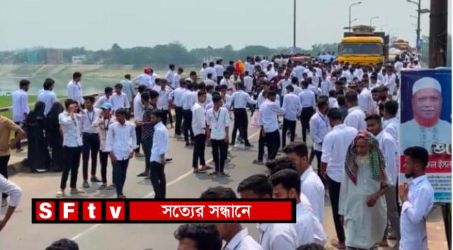 মোঃ রনি রজব : চাঁপাইনবাবগঞ্জ পলিটেকনিক ইনস্টিটিউটের শিক্ষার্থীরা মহানন্দা নদীর বারঘরিয়া সেতু এলাকায় অবস্থান নিয়ে সড়ক অবরোধ করে বিক্ষোভ কর্মসূচি পালন করেছেন। বুধবার (১৬ এপ্রিল) সকাল ১১টার দিকে তাদের ছয় দফা দাবির বাস্তবায়নের দাবিতে তারা এ কর্মসূচি শুরু করেছেন। শিক্ষার্থীরা জানান,দীর্ঘদিন ধরে তারা নানা সমস্যার মুখে রয়েছেন। এসব সমস্যা দ্রুত সমাধান চেয়ে তারা প্রশাসনের দৃষ্টি আকর্ষণ করেছেন।কিন্তুু দাবিগুলো বাস্তবায়ন না হওয়ায় তারা বাধ্য হয়ে রাস্তায় নেমেছেন।বিক্ষদ্ধ শিক্ষার্থীরা জানান, তাদের দাবি না মানা হলে ভবিষ্যতে আরও কঠোর কর্মসূচি দেওয়া হবে।