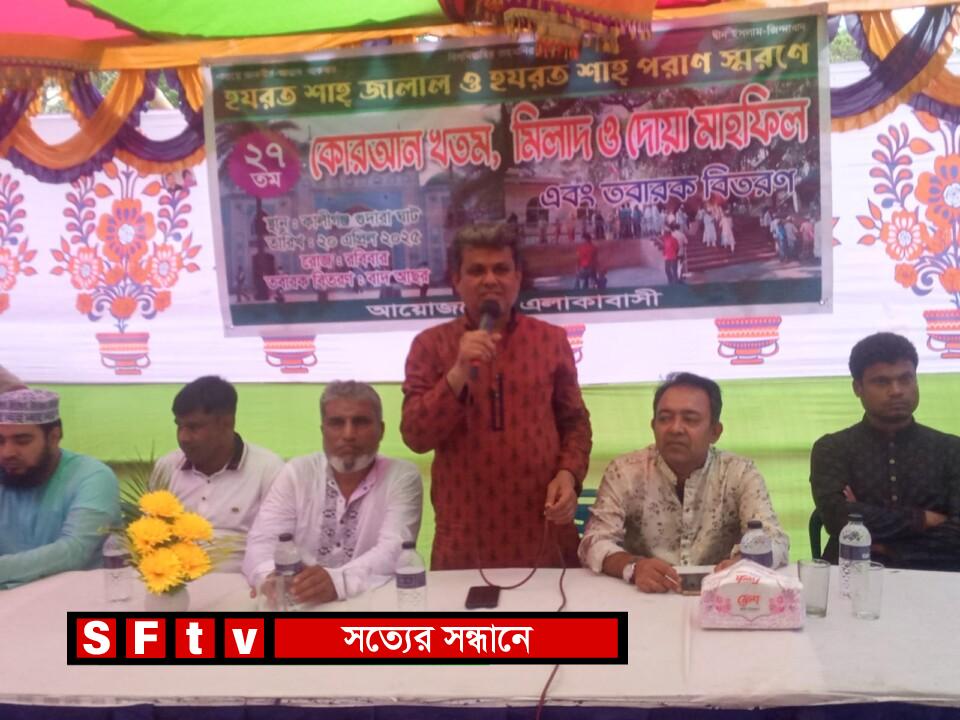 মোঃ মুক্তাদির হোসেন : গাজীপুরের কালীগঞ্জে হযরত শাহ জালাল ও হযরত শাহ পরাণ স্মরণে ২৭ তম কোরআন খতম, মিলাদ ও দোয়া মাহফিল এবং তবারক বিতরণ অনুষ্ঠিত হয়েছে। রোববার বাদ আছর কালীগঞ্জ পৌরসভার ৪ নং ওয়ার্ডের কালীগঞ্জ গুদারাঘাটে এলাকাবাসীর আয়োজনে এ মিলাদ ও দোয়া মাহফিল অনুষ্ঠিত হয়। অনুষ্ঠানে বক্তব্য রাখেন কালীগঞ্জ পৌরসভার সাবেক মেয়র মো.লুৎফুর রহমান, কালীগঞ্জ পৌর বিএনপির সাধারন সম্পাদক মো. ইব্রাহীম প্রধান, গাজীপুর জেলা যুবদলের সাবেক সাধারন সম্পাদক মাসুদ রানা, কালীগঞ্জ পৌর স্বেচ্ছাসেবক দলের সদস্য সচিব রাশিদুল হাসান রিপন, কালীগঞ্জ পৌর শ্রমিক দলের সভাপতি মিলন খান প্রমুখ। এই সময় অন্যান্যদের মধ্যে উপস্থিত ছিলেন, জেলা শ্রমিক দলের আহবায়ক কমিটির সদস্য মহসিন আহমেদ, কালীগঞ্জ পৌর বিএনপির প্রচার সম্পাদক মো.সেলিম মিয়া, সহ-যুব বিষয়ক সম্পাদক মো.রফিকুল ইসলাম রফিক কালীগঞ্জ পৌর যুবদলের যুগ্ম আহবায়ক মো.সফিক মিয়া ও নুর মোহাম্মদ নুরু, কালীগঞ্জ পৌর স্বেচ্ছাসেবক দলের সাবেক সাধারন সম্পাদক শওকত আকবর, কালীগঞ্জ পৌর ৫ নং ওয়ার্ড বিএনপির সভাপতি মাজম মোহাম্মদ, সেবা হোটেলের মালিক মো. ফারুক মিয়াসহ বিএনপি ও অঙ্গসংগঠনের নেতাকর্মী, ব্যবসায়ী, বিভিন্ন শ্রেণী পেশার লোকজন।