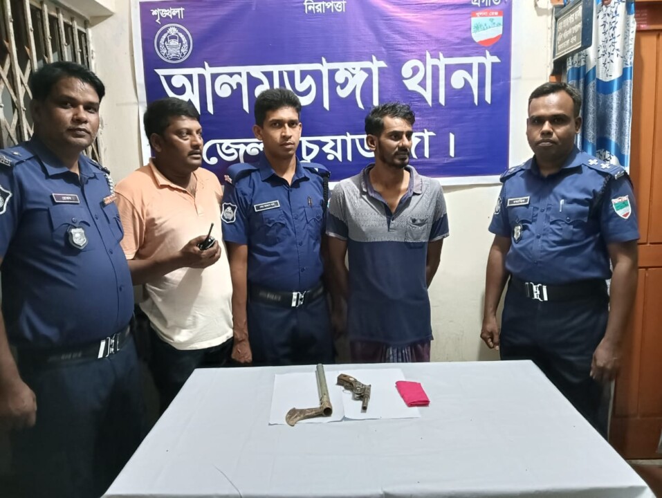 চুয়াডাঙ্গার আলমডাঙ্গা থানার পুলিশ বিশেষ অভিযানে অস্ত্রধারী এক সন্ত্রাসীকে গ্রেফতার করেছে। গ্রেফতারকৃত ব্যক্তির মোঃ আব্দুল আলীম (৩৫)। তার বাড়ি চুয়াডাঙ্গা জেলার আলমডাঙ্গা থানার রাধিকাগঞ্জ গ্রামে। ২০ এপ্রিল ২০২৫ ইং তারিখ রাত ১০টা ৪৫ মিনিটে কুমারী ইউনিয়নের হাড়গাড়ি গ্রামের হাড়গাড়ি-টু-কুমারী পাঁকা সড়কের পাশে জনৈক উজ্জল হোসেনের বাঁশবাগানের গর্ত থেকে তাকে গ্রেফতার করা হয়। এ সময় তার কাছ থেকে একটি অবৈধ দেশীয় তৈরি ওয়ান শাটার গান ও একটি চাইনিজ কুড়াল উদ্ধার করে পুলিশ। গোপন সংবাদের ভিত্তিতে আলমডাঙ্গা থানার অফিসার ইনচার্জের নেতৃত্বে এসআই (নিঃ) কাজী শামসুল আলম সঙ্গীয় ফোর্সসহ এ অভিযান পরিচালনা করেন। অভিযানকালে উদ্ধারকৃত আলামত জব্দ তালিকা অনুযায়ী জব্দ করা হয় এবং গ্রেফতারকৃত আসামির বিরুদ্ধে আলমডাঙ্গা থানায় মামলা নং-৩৯, তারিখ-২০/০৪/২০২৫, ধারা- 19A/19(f) The Arms Act, 1878 অনুযায়ী মামলা রুজু করা হয়েছে। এ বিষয়ে আলমডাঙ্গা থানার অফিসার ইনচার্জ বলেন,