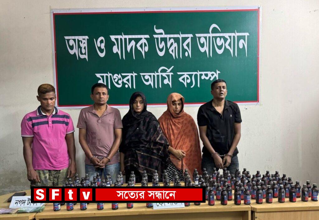 তৌহিদ : মাগুরা ক্যাম্পের গোয়েন্দা তথ্যের ভিত্তিতে জানা যায় যে, মাগুরা জেলার সদর থানার অন্তর্গত আবালপুর গ্রামের মোঃ এলিচ হোসেন (৩৭) এর বাসায় অবৈধ অস্ত্র ও বিপুল পরিমাণ মাদকদ্রব্য রয়েছে। এরই প্রেক্ষিতে সোমবার ২১ এপ্রিল রাত ৮.৪৫ ঘটিকায় মাগুরা আর্মি ক্যাম্পের এর নেতৃত্বে পরিচালিত টহল দল কতৃক একটি ঝটিকা অভিযান পরিচালনা করা হয়। এই অভিযানে ৫ জন সন্ত্রাসীর নিকট থেকে ১১৬ বোতল ফেনসিডিল ও নগদ ৩৬,০০০.০০ (ছত্রিশ হাজার টাকা) জব্দ করা হয়। এছাড়া ঘটনাস্থল হতে যে ৫ জন আসামিকে গ্রেফতার করা হয় তারা হলো- ১। মোঃ এলিচ হোসেন (৩৭)