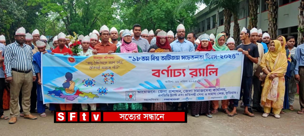 রুহুল আমিন রুকু : স্নায়ু বৈচিত্র্যকে বরণ করি, টেকসই সমাজ গড়ি ” এই প্রতিপাদ্যকে সামনে রেখে ১৮ তম বিশ্ব অটিজম সচেতনতা দিবস ২০২৫ উদযাপন উপলক্ষে কুড়িগ্রাম জেলা সদরে বর্ণাঢ্য রেলি ও আলোচনা সভা অনুষ্ঠিত হয়েছে । জেলা প্রশাসন, জেলা সমাজ সেবা কার্যালয়, এনডিডি ট্রাস্ট এবং প্রতিবন্ধী সেবা ও সাহায্য কেন্দ্র কুড়িগ্রামের আয়োজনে মঙ্গলবার ২২ এপ্রিল ২০২৫ বিশ্ব অটিজম সচেতনতা দিবস উপলক্ষে সকালে জেলা প্রশাসকের কার্যালয় হতে একটি বর্ণাঢ্য রেলি বের হয় । সাইট সেভার্সের অর্থায়নে জেলা একীভুত চক্ষুসেবা কর্মসুচির আওতায় এবং উলিপুর মরিয়ম চক্ষু হাসপাতালের সহযোগিতায় জেলা প্রশাসক কার্যালয়ের স্বপ্নকুড়ি মিলনায়তনে জেলা প্রশাসক নুসরাত সুলতানার সভাপতিত্বে আলোচনা সভা অনুষ্ঠিত হয় । সভায় উপস্থিত ছিলেন অতিরিক্ত জেলা প্রশাসক উত্তম কুমার রায়, প্রতিবন্ধী সেবা ও সাহায্য কেন্দ্রের সহকারী পরিচালক আবু বক্কর সিদ্দিক , কনসালটেন্ট ডাক্তার আরিফুর রহমান ,এনডিডি ট্রাস্ট এর প্রতিনিধি ডাক্তার মামুনুর রশিদ , জেলা সমাজসেবা কার্যালয়ের সহকারী পরিচালক এ কে এম মনিরুজ্জামান ,উলিপুর মরিয়ম চক্ষু হাসপাতালের সহকারী প্রোগ্রাম সমন্বয়কারী অরবিন্দু রায় সহ বিভিন্ন এনজিও প্রতিনিধিবৃন্দ। অনুষ্ঠানে সফল কেয়ার গিভার হিসেবে কৃষ্ণা রানী সাহা, সফল পিতা-মাতা হিসেবে হবিবর রহমান ও জোবেদা বেগম এবং সফল প্রতিষ্ঠান হিসেবে সুখাতি বুদ্ধি প্রতিবন্ধী ও অটিজম বিদ্যালয়কে সম্মাননা ক্রেস্ট প্রদান করা হয়।