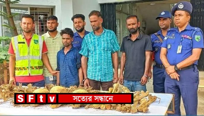 আবুল কালাম আজাদ : ঢাকা ময়মনসিংহ মহাসড়কের ময়মনসিংহ জেলার ভালুকায় যাত্রীবাহী বাসে অভিযান চালিয়ে মানুষের মাথার তিনটি খুলিসহ বিপুল পরিমাণ কঙ্কাল জব্দ করেছে যৌথবাহিনী। এ ঘটনায় তিনজনকে আটক করা হয়েছে। সোমবার (২১ এপ্রিল ২৫) দুপুরে বিষয়টি নিশ্চিত করেছেন ভরাডোবা হাইওয়ে থানার ভারপ্রাপ্ত কর্মকর্তা (ওসি) জাহাঙ্গীর আলম। আটককৃতরা হলেন, সাইফুল (৪৫), ফারুক হোসেন (৪৮) এবং আলমগীর হোসেন (২৪)। তারা ময়মনসিংহ সদর ও শেরপুর জেলার বাসিন্দা। এর আগে, রবিবার (২০ এপ্রিল) রাত সাড়ে ১২টার দিকে উপজেলার সীডস্টোর সোনার বাংলা উচ্চ বিদ্যালয়ের সামনে এ অভিযান পরিচালনা করা হয়। এ বিষয়ে ভরাডোবা হাইওয়ে থানার ভারপ্রাপ্ত কর্মকর্তা (ওসি) জাহাঙ্গীর আলম বলেন, ‘ময়মনসিংহ জেলা মোটরযান শ্রমিক ইউনিয়নের একটি বাসে অভিযান পরিচালনা করা হয়। এসময় ওই তিন ব্যক্তির সাথে থাকা একটি ট্রাভেল ব্যাগ তল্লাশি করলে মানুষের তিনটি মাথার খুলি, ২৮টি শরীরের বিভিন্ন অংশের হাড়, একটি মেরুদণ্ডের হাড় পাওয়া যায়। পরে তাদেরকে আটক করা হয় এবং হাড়গুলো জব্দ করা হয়। তিনি আরও বলেন, আটককৃতরা শেরপুর ও ময়মনসিংহের বিভিন্ন কবর থেকে মানুষের হাড় চুরি করে অবৈধ ব্যবসা করে আসছিল। এ ঘটনায় পুলিশের উপপরিদর্শক সজীব মিয়া বাদি হয়ে একটি মামলা করেছেন।