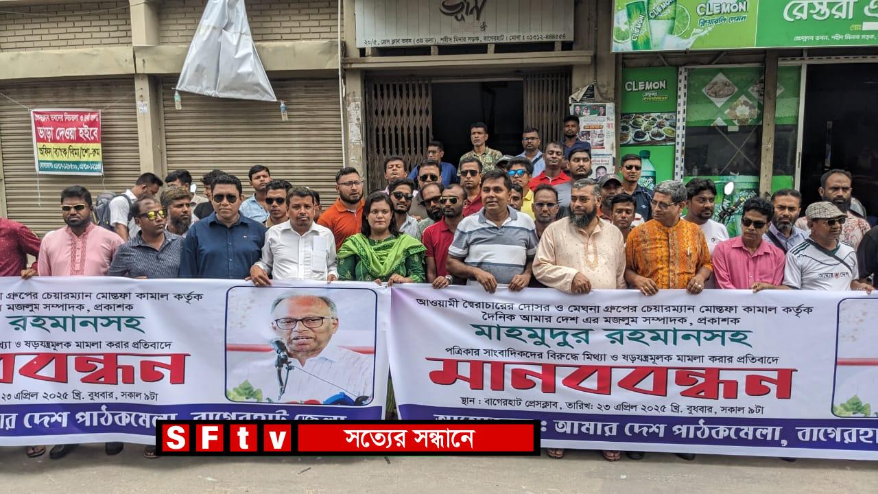 আমার দেশ পত্রিকার সম্পাদকের বিরুদ্ধে মামলার প্রতিবাদে বাগেরহাটে মানববন্ধন