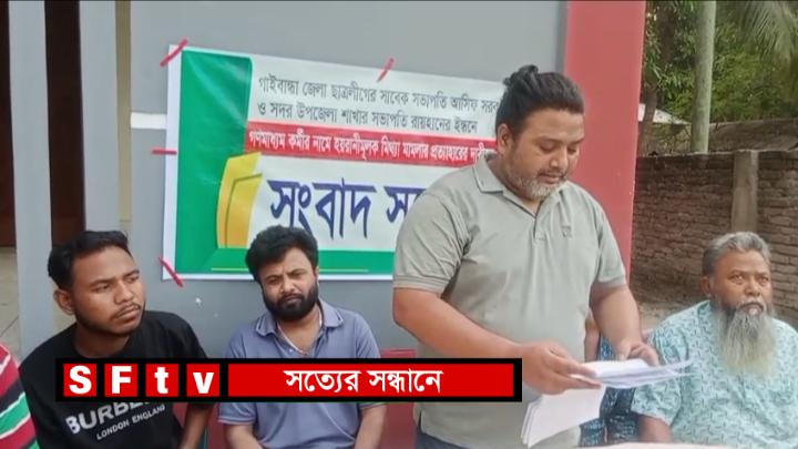 মো:জাহিদুল ইসলাম : ২৪ এপ্রিল (বৃহস্পতিবার) বিকালে গাইবান্ধা সদর কচুয়ার খামার উচ্চ বিদ্যালয় মাঠে অনুষ্ঠিত সংবাদ সম্মেলনে লিখিত বক্তব্য পাঠ করেন ভুক্তভোগী সাংবাদিক মোঃ আসাদুজ্জামান আশিক গাইবান্ধা থেকে প্রকাশিত দৈনিক গাইবান্ধার মুখ পত্রিকার ক্রাইম রিপোর্টার ও এনপিএস গাইবান্ধা জেলা শাখার যুগ্ম সাধারণ সম্পাদক এবং গাইবান্ধা জেলা প্রেসক্লাবের ক্রীড়া বিষয়ক সম্পাদক। বক্তব্যে মোঃ আসাদুজ্জামান আশিক বলেন, নিষিদ্ধ বাংলাদেশ ছাত্রলীগ, গাইবান্ধা জেলা শাখার সাবেক সভাপতি মোঃ আসিফ সরকার ও গাইবান্ধা সদর উপজেলা শাখার সভাপতি মোঃ রায়হান ইসলামের ইঙ্গিতে মোছাঃ মিরা বেগমকে দিয়ে ২০২৩ সালে আমার নামে মিথ্যা চাঁদাবাজির মামলা দিয়ে হয়রানি করাসহ আর্থিক ক্ষতিসাধন করেন। শুধুমাত্র দলীয় প্রভাব খাঁটিয়ে আমাকে সমাজে হেয় প্রতিপন্ন করাসহ ক্ষতি করার জন্য আমার বিরুদ্ধে মামলা দেয়। এতে করে আমি চরম ক্ষতিগ্রস্ত হয়েছি। উক্ত মিথ্যা মামলা প্রত্যাহারসহ দায়ী ছাত্রলীগের দুই নেতার শাস্তির দাবী জানাচ্ছি। সংবাদ সম্মেলনে আরো উপস্থিত ছিলেন ভুক্তভোগীর পিতা মোঃ আব্দুল কুদ্দুস সরকার, মো: আরিফুল ইসলাম আরিফ, মোঃ রাকিব মিয়া, মোঃ এরশাদ মিয়া প্রমুখ।