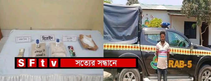 মোঃ রনি রজব : চাঁপাইনবাবগঞ্জের দেবী নগরে আড়াই কোটি টাকা মূল্য ২ কেজি ৫০০ গ্রাম হিরোইন সহ ইউসুফ আলী (২৫) নামে এক যুবককে আটক করেছে। শুক্রবার(২৫ এপ্রিল) মধ্যরাতে পাঠানো প্রেস বিজ্ঞপ্তিতে এসব তথ্য নিশ্চিত করে র্র্যাব ৫,চাঁপাইনবাবগঞ্জ ক্যাম্প।এর আগে সকালে সদর উপজেলার দেবীনগর ইউনিয়নের হরমা গ্রামে মরা নদী ও পদ্মা নদীর মোহনায় ভুট্টা ক্ষেতের পাশ থেকে এসব হিরোইন উদ্ধার করা হয়। আটক ইউসুফ আলী রাজশাহী গোদাগাড়ী উপজেলার জাহানাবাদ চাতড়াপুকুর এলাকার আব্দুল বসিরের ছেলে। র্্যাব জানায়, গোয়েন্দা তথ্যের ভিত্তিতে দুই নদীর মোহনায় থাকা ভুট্টা ক্ষেতে অবস্থান নেয় রেবের একটি অভিযানের দল। পরবর্তীতে একটি মোটরসাইকেল তল্লাশি করে আরোহীর কাছ থেকে ২ কেজি ৫০০ গ্রাম হিরোইন উদ্ধার করা হয়। অভিযানে মোটরসাইকেল ছাড়াও একটি মোবাইল ফোন ও নগদ ২৫০০ টাকা জব্দ করা হয়েছে।