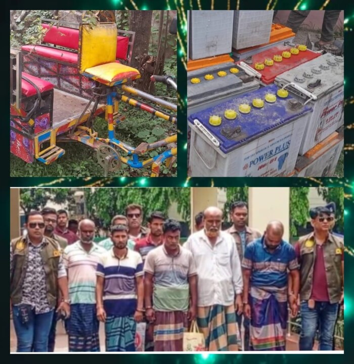 উজ্জ্বল কুমার জেলা প্রতিনিধি নওগাঁঃ গত ২৩ এপ্রিল,২০২৫ খ্রিঃ রাতে সাপাহার থানাধীন নোচনাহার বাজার থেকে জনৈক মোঃ সাদিকুল ইসলাম (৩২) তার নিজের অটো চার্জার চালিয়ে বাড়ি ফেরার পথে সাপাহার থানাধীন ইলিমপুর ব্রীজের নিকট রাস্তার পাশে ওৎপেতে থাকা অজ্ঞাতনামা দুষ্কৃতিকারীরা ভিকটিমের টমটম থামিয়ে তাকে গাড়ি থেকে টেনে নামিয়ে গলায় চাকু ধরে হত্যার ভয় দেখিয়ে পাশের আম বাগানে নিয়ে এলোপাতাড়ি মারপিট করে টমটমটি ছিনতাই করে নিয়ে যায়।এ সংক্রান্তে সাপাহার থানায় একটি মামলা রুজু করা হয়েছে। উল্লেখ্য , অপর একটি ঘটনায় একই ডাকাত দল গত ২৫/০৪/২০২৫খ্রি. দিবাগত রাতে অনুমান পোরশা থানাধীনমশিদপুর এলাকা হতে চালককে এলোপাতাড়ি মারপিট করে একটি অটো চার্জার ভ্যান ছিনতাই করে নিয়ে যায়। এ সংক্রান্তেও পোরশা থানায় অন্য একটি মামলা রুজু করা হয়েছে।গ্রেফতারকৃত ডাকাত মোঃ সেলিম বহুল আলোচিত সাপাহার উপজেলা জামায়াত এর সেক্রেটারি আব্দুল্লাহিল কাফি হত্যা মামলার অন্যতম প্রধান আসামী।নওগাঁ জেলার সুযোগ্য পুলিশ সুপার, জনাব মোহাম্মদ সাফিউল সারোয়ার, বিপিএম মহোদয়ের সার্বিক দিক নির্দেশনায় জেলা ডিবির একাধিক টিম সাড়াশি অভিযান পরিচালনা করে গত ২৭/০৪/২০২৫ তারিখে উক্ত আসামীদেরকে রাজশাহী ও নওগাঁ জেলার বিভিন্ন এলাকা হতে গ্রেফতার করে এবং তাদের নিকট থেকে লুন্ঠিত মালামাল উদ্ধার করে।আসামীদের প্রাথমিক জিজ্ঞাসাবাদে জানা যায়, নওগাঁ জেলার সংগঠিত একাধিক ডাকাতি এবং দস্যুতা ঘটনার সাথে তারা প্রত্যক্ষ ও পরোক্ষভাবে জড়িত। উল্লেখ্য যে, কুখ্যাত ডাকাত মোঃআব্দুল জব্বার এর বিরুদ্ধে বিভিন্ন থানায় ১০ টি ডাকাতি ও চুরি মামলা, মোঃ নুরুজ্জামান এর বিরুদ্ধে বিভিন্ন থানায় ০৪ টি ডাকাতি ও চুরি মামলা এবং মোঃ সেলিম এর বিরুদ্ধে বিভিন্ন থানায় ০৮ টি ডাকাতি ওচুরি মামলা রয়েছে।আন্তঃজেলা ডাকাত চক্রের সক্রিয় সদস্যের নাম ও ঠিকানাঃ১। মোঃ আব্দুল জব্বার (৪০), পিতা-মোঃ আব্দুল হাকিম, সাং-সোভাপুর, থানা-পোরশা, জেলা-নওগাঁ, ২। মোঃ নুরুজ্জামান (৪০), পিতা-মোঃ আব্দুর রহমান, সাং-পাথরপূজার, থানা-গোমস্তাপুর, জেলা-চাঁপাইনবাবগঞ্জ,৩। মোঃ সেলিম (৩০), পিতা-মোঃ ইব্রাহিম, সাং-ধবলডাঙ্গা, থানা-সাপাহার, জেলা-নওগাঁ।লুন্ঠিত অটো চার্জার ভ্যান/টমটম ক্রয়-বিক্রয়ের সহিত জড়িত সদস্যদের নাম ও ঠিকানাঃ ১। মোঃ শহিদ খান (৩৪), পিতা-মোঃ আলম খান, ২। মোঃ কাওছার আলী মৃধা (২৪), পিতা-মোঃ পরেশ আলী মৃধা, উভয় সাং-উত্তর কাঞ্চন, ৩। মোঃ আব্দুল মতিন মোল্লা (৫০), পিতা-মোঃ তমিজ উদ্দিন মোল্লা,সাং-কালিকাপুর, ৪। মোঃ জিয়াউর রহমান (৪২), পিতা-মৃত ময়েন উদ্দিন, সাং-কামারকুড়ি, ৫। মোঃ আজিজুল মন্ডল (৬৪), পিতা-মৃত সোলায়মান মন্ডল, সাং-শ্রীরামপুর, সর্ব থানা-মান্দা, সর্ব জেলা-নওগাঁ।
