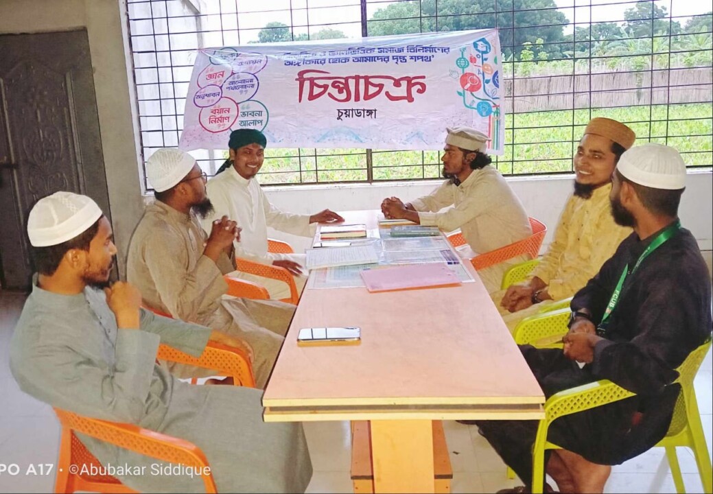 ২৯ এপ্রিল ২০২৫:বুদ্ধিবৃত্তিক সংগঠন ‘চিন্তাচক্র, চুয়াডাঙ্গা’র উদ্যোগে আজ মঙ্গলবার বিকাল ৪টায় ফাস্ট ক্যাপিটাল বিশ্ববিদ্যালয় চুয়াডাঙ্গা জেলা ক্যাম্পাসের ক্যান্টিনে অনুষ্ঠিত হয়েছে একটি পাঠচক্র। ‘এদেশের ইতিহাস-ঐতিহ্য, ভাষা-সাহিত্য ও সাংস্কৃতিক বয়ানে বাঙালি মুসলমান’ শিরোনামের এই পাঠচক্রে আলোচনার কেন্দ্রে ছিল উস্তাদ মুসা আল হাফিজের প্রবন্ধগ্রন্থ ‘বাংলাদেশ ও ইসলাম: আত্মপরিচয়ের ডিসকোর্স’। পাঠচক্রে চিন্তাচক্র চুয়াডাঙ্গার বিভিন্ন পর্যায়ের দায়িত্বশীলদের মধ্যে উপস্থিত ছিলেন আবুবকর সিদ্দিক, লিটন মাহমুদ, জিহাদ আলী, ইব্রাহিম হোসেন, শামীম হোসেন, আতিফুল ইসলাম ও আবু জর প্রমুখ। সংগঠনটির প্রতিষ্ঠাতার ভাষ্যে, চিন্তাচক্র একটি জ্ঞানভিত্তিক সমাজ গঠনের লক্ষ্যে কাজ করছে। তরুণ প্রজন্মের মাঝে আত্মপরিচয়ের সংকট নিরসনে এবং সাংস্কৃতিক ও বুদ্ধিবৃত্তিক বয়ান গঠনে এ ধরনের কার্যক্রম চালিয়ে যাওয়ার ঘোষণা দেন তিনি।
