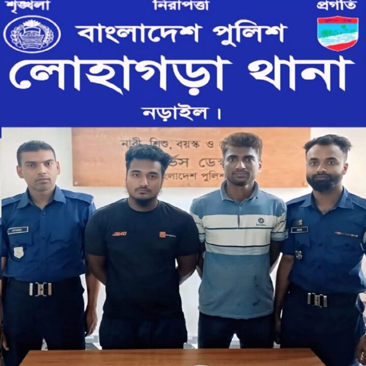 নড়াইলের লোহাগড়ায় মাদক ব্যবসায়ের সাথে জড়িত থাকার অভিযোগে দু’জন মাদক কারবারীকে ইয়াবা ট্যাবলেটসহ গ্রেফতার করেছে লোহাগড়া থানা পুলিশ। উজ্জ্বল রায়, জেলা প্রতিনিধি নড়াইল থেকে জানান, গ্রেফতারকৃত সালমান বিশ্বাস (২৩) লোহাগড়া পৌরসভার খলিসাখালী গ্রামের শামীম বিশ্বাসের ছেলে ও চঞ্চল গাজী (৩৮) পার মল্লিকপুর গ্রামের মৃত জয়নাল গাজীর ছেলে।লোহাগড়া থানার অফিসার ইনচার্জ (ওসি) আশিকুর রহমান বিষয়টি নিশ্চিত করেছেন।পুলিশ সূত্রে জানা গেছে , গোপন সংবাদের ভিত্তিতে গত মঙ্গলবার (২৯ এপ্রিল) বিকালে লোহাগড়া থানার এসআই শাহিন মিয়া, এসআই আব্দুস শুকুর ও এএসআই রুহুল আমিনের নেতৃত্বে একদল পুলিশ পার-মল্লিকপুর গ্রামের জনৈক আলম মিয়ার বাড়ির সামনে থেকে অভিযান চালিয়ে তাদের গ্রেফতার করে। এ সময় তাদের নিকট থেকে অবৈধ মাদকদ্রব্য ৪০ (চল্লিশ) পিস ইয়াবা ট্যাবলেট জব্দ করা হয়।এ বিষয়ে লোহাগড়া থানায় অফিসার ইনচার্জ (ওসি) আশিকুর রহমান বলেন, মাদকদ্রব্য সহ মাদক কারবারীকে আটকের ঘটনায় থানায় মাদকদ্রব্য নিয়ন্ত্রণ আইনে একটি মামলা দায়ের করা হয়েছে। আসামীদের বুধবার দুপুরে আদালতে পাঠানো হয়েছে।উজ্জ্বল রায়, জেলা প্রতিনিধি নড়াইল থেকে।
