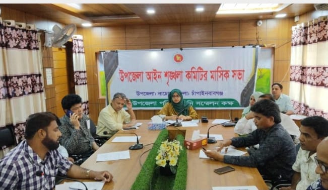 মোঃ রনি রজব ভোলাহাট সংবাদদাতা: চাঁপাইনবাবগঞ্জের নাচোল উপজেলার আইনশৃঙ্খলা কমিটির মাসিক সভা অনুষ্ঠিত হয়েছে। বুধবার (৩০ এপ্রিল) বেলা ১১ টার দিকে উপজেলা মিনি কনফারেন্স রুমে উপজেলা নির্বাহী অফিসার নীলুফা সরকারের সভাপতিত্বে আইনশৃঙ্খলার মাসিক সভা অনুষ্ঠিত হয়। সভায় সহকারী কমিশনার (ভূমি) সুলতানা রাজিয়া,স্বাস্থ্য কমপ্লেক্স ও পরিবার পরিকল্পনা কর্মকর্তা আহমেদ শরীফ,কৃষি সম্প্রসারন অফিসার আবদুন নূর, মহিলা কলেজের প্রফেসর দুরুল হোদা, কসবা ইউপি চেয়ারম্যান জাকারিয়া আল মেহেরাব,সহকারী মাধ্যমিক শিক্ষা অফিসার দুলাল উদ্দিন খান, থানার এসআই আলমগীর সহ বিভিন্ন দপ্তরের কর্মকর্তা, শিক্ষক, কাজী, সাংবাদিকরা উপস্থিত থেকে বক্তব্য রাখেন। আইনশৃঙ্খলা সভায় মাদক,বাল্যবিবাহ, ধর্ষণ, খুন, নারী ও শিশু নির্যাতন, অপহরণ, সন্রাস ও নাশকতা, ডাকাতি, চোরাকারবারি, ছিনতাই, রাস্তা ঘাট, স্বাস্থ্য সেবা,সরকারি জমিজমা সংক্রান্ত, পানি সরবরাহ, গাড়ীঘোরা, রাস্তায় এক্সিডেন্ট ও যানজট নিরাসন সহ বিভিন্ন বিষয় নিয়ে আলোচনা করেন অতিথি বৃন্দরা।