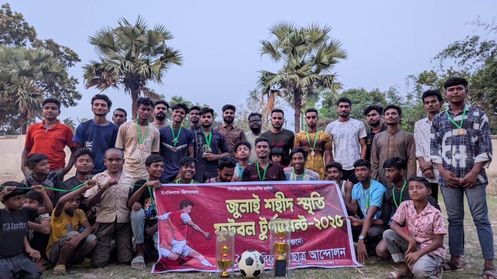 ২ মে ২০২৫: বৈষম্যবিরোধী ছাত্র আন্দোলন, কুমারী ইউনিয়ন শাখার উদ্যোগে আজ বিকেলে দূর্লভপুর মাঠে অনুষ্ঠিত হয়েছে “জুলাই শহিদ স্মৃতি ফুটবল টুর্নামেন্ট”। ঐতিহাসিক জুলাই অভ্যুত্থানের স্মরণে আয়োজিত এ প্রতিযোগিতায় ইউনিয়নের চারটি দল অংশগ্রহণ করে।