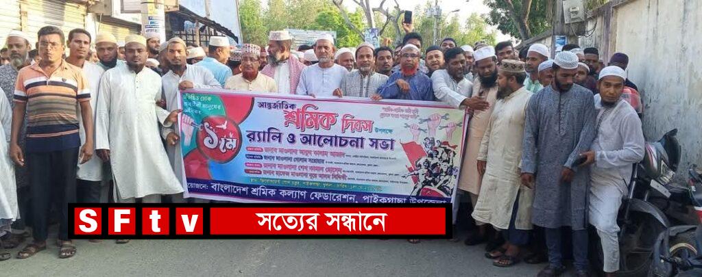 এম জালাল উদ্দীন : শ্রমিক কল্যাণ ফেডারেশন পাইকগাছা উপজেলা শাখার উদ্যোগে র‍্যালি ও আলোচনা সভা অনুষ্ঠিত হয়েছে। ১ লা মে আন্তর্জাতিক শ্রমিক দিবস উপলক্ষে বৃহস্পতিবার বিকেলে এ কর্মসূচির আয়োজন করে সংগঠনটি। থানা জামে মসজিদের সামনে থেকে র‍্যালিটি শুরু হয়ে উপজেলা সদরের প্রধান সড়ক প্রদক্ষিণ করে। পরে জিরোপয়েন্ট চত্বরে সংগঠনের উপজেলা সভাপতি মাওলানা নূরে আলম সিদ্দিকীর সভাপতিত্বে আলোচনা সভা অনুষ্ঠিত হয়। অনুষ্ঠানে প্রধান অতিথি ছিলেন জামায়াতে ইসলামীর কেন্দ্রীয় কর্মপরিষদ সদস্য আলহাজ্ব মাওলানা আবুল কালাম আজাদ। বিশেষ অতিথি ছিলেন জেলা জামায়াতের সিনিয়র নায়েবে আমীর ও শ্রমিক কল্যাণ ফেডারেশনের উপদেষ্টা মাওলানা গোলাম সরোয়ার, জেলা জামায়াতের কর্মপরিষদ সদস্য মাওলানা আমিনুল ইসলাম, কাজী তমজিদ আলম, উপজেলা জামায়াতের আমীর মাওলানা সাঈদুর রহমান, সেক্রেটারি মাওলানা বুলবুল আহমেদ, পৌর আমীর ডাঃ জিএম আসাদুল হক, সেক্রেটারি মিজানুর রহমান, সাবেক উপজেলা ভাইস চেয়ারম্যান মাওলানা কামাল হোসেন, এডভোকেট আব্দুল মজিদ, শ্রমিক কল্যাণ ফেডারেশনের উপজেলা সেক্রেটারি ডাঃ আসাদুজ্জামান, জামায়াত নেতা প্রভাষক মোমিন উদ্দিন, মাওলানা আব্দুল মজিদ, এডভোকেট রুহুল আমিন, সম আব্দুল্লাহ আল মামুন, মুহাম্মদ শফিয়ার রহমান, শিবিরের দক্ষিণ জেলা সভাপতি আবুজার গিফারী, শিবির নেতা তামিম রায়হান, আল মামুন ও মুজাহিদুল ইসলাম।
