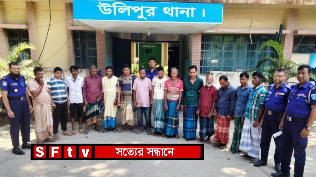 রফিকুল ইসলাম রফিক : কুড়িগ্রামের উলিপুরের দুর্গাপুর ইউনিয়নের পাতিয়ারপাড়া এলাকায় অভিযান চালিয়ে দুর্গাপুর ইউনিয়ন বিএনপি’র প্রচার সম্পাদক ইমান হোসেনসহ ১৪ জন জুয়াড়িকে আটক করেছে উলিপুর থানা পুলিশ।এসময় তাদের কাছ থেকে জুয়া খেলারর সরঞ্জাম ডাবু, ছয়টি গুটি, ৪,৬১০ টাকা নগদ সারে চার হাজার ও একটি জুয়ার বোর্ড উদ্ধার করা হয়। এঘটনায় উলিপুর থানার একটি মামলা রুজু করা হয়েছে। উলিপুরের দুর্গাপুর ইউনিয়ন বিএনপির প্রচার সম্পাদক ইমান হোসেন সহ অন্য আটককৃতরা হলেন- আশারাফুল, দীনবন্ধু, রফিকুল ইসলাম, রিয়াজুল, শফিকুল ইসলাম, মহব্বত আলী, নুরুজ্জামান, জাহাঙ্গীর আলম, শ্রী মন্টু, শ্রী জাম্বু দাস, মুকুল মিয়া, নুর ইসলাম এরশাদুল হক। উলিপুর থানার ভারপ্রাপ্ত কর্মকর্তা (ওসি) জিল্লুর রহমান জানান,আটককৃতদের কুড়িগ্রাম আদালতে প্রেরণ করা হয়েছে।