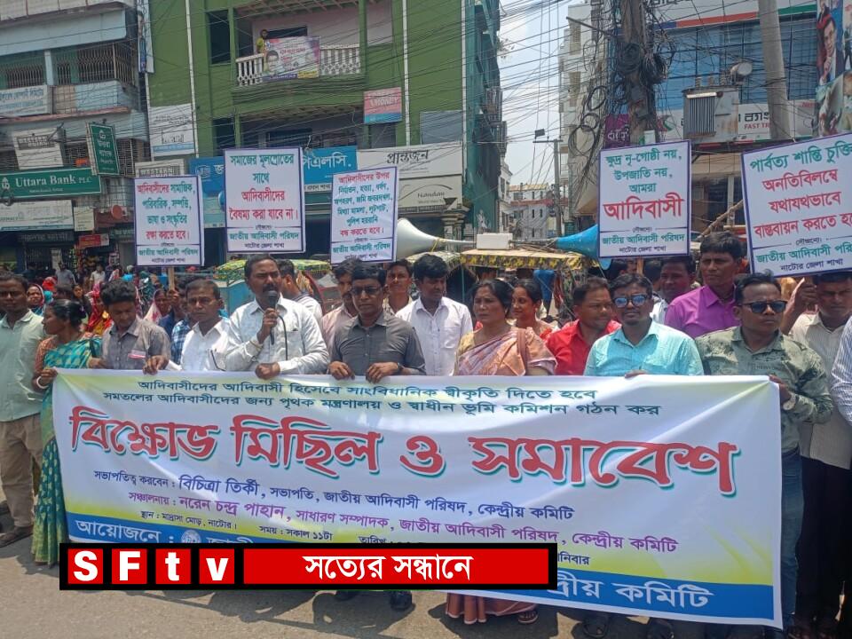 সাগর কুমার সিং : আদিবাসীদের আদিবাসী হিসেবে সাংবিধানিক স্বীকৃতি দিতে হবে, সমতলের আদিবাসী জন্য পৃথক স্বাধীন ভূমি কমিশন ও মন্ত্রণালয় গঠন করো। আসন্ন জাতীয় বাজেটে আদিবাসীদের উন্নয়ন জন্য বাজেটে বরাদ্দ বৃদ্ধি করতে হবে উক্ত দাবিতে জাতীয় আদিবাসী পরিষদের কেন্দ্রীয় কমিটির আয়োজনে আজ ৩ মে ২০২৫ সকাল ১১ টায় নাটোর মাদ্রাসা মোড়ে বিক্ষোভ মিছিল ও সমাবেশ অনুষ্ঠিত হয়েছে। জাতীয় আদিবাসী পরিষদের কেন্দ্রীয় কমিটির সভাপতি বিচিত্রা তির্কি সভাপতিত্বে এবং সাধারণ সম্পাদক নরেন চন্দ্র পাহান এর সঞ্চালনায় বক্তব্য রাখেন জাতীয় আদিবাসী পরিষদের প্রেসিডিয়াম সদস্য ফিলিমন বাস্কে, সাংগঠনিক সম্পাদক সূভাষ চন্দ্র হেমব্রম, দপ্তর সম্পাদক নকুল পাহান, নারী বিষয়ক সম্পাদক সাবিত্রী হেমব্রম, সেচ্ছাসেবক সম্পাদক হেমন্ত পাহান, রংপুর জেলা কমিটির সভাপতি বিমল চন্দ্র খালকো, নাটোর জেলা কমিটির রঘুনাথ এক্কা, পাবনা জেলা কমিটির সভাপতি আশিক বানিয়াস, নওগাঁ জেলা সাধারণ সম্পাদক অজিত কুমার মুন্ডা, নাটোর জেলা সাধারণ সম্পাদক প্রতাব সিং। এছাড়াও জাতীয় আদিবাসী পরিষদের নাটোর, রাজশাহী, নওগাঁ, বগুড়া, পাবনা, সিরাজগঞ্জ, রংপুর, গাইবান্ধা চাঁপাইনবাবগঞ্জ জেলার বিভিন্ন উপজেলার আদিবাসী ছাত্র – জনতা অংশ গ্রহণ করে।